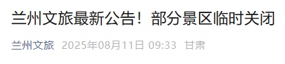 据“兰州文旅”微信公众号消息,兰州市文化和旅游局11日发布公告: