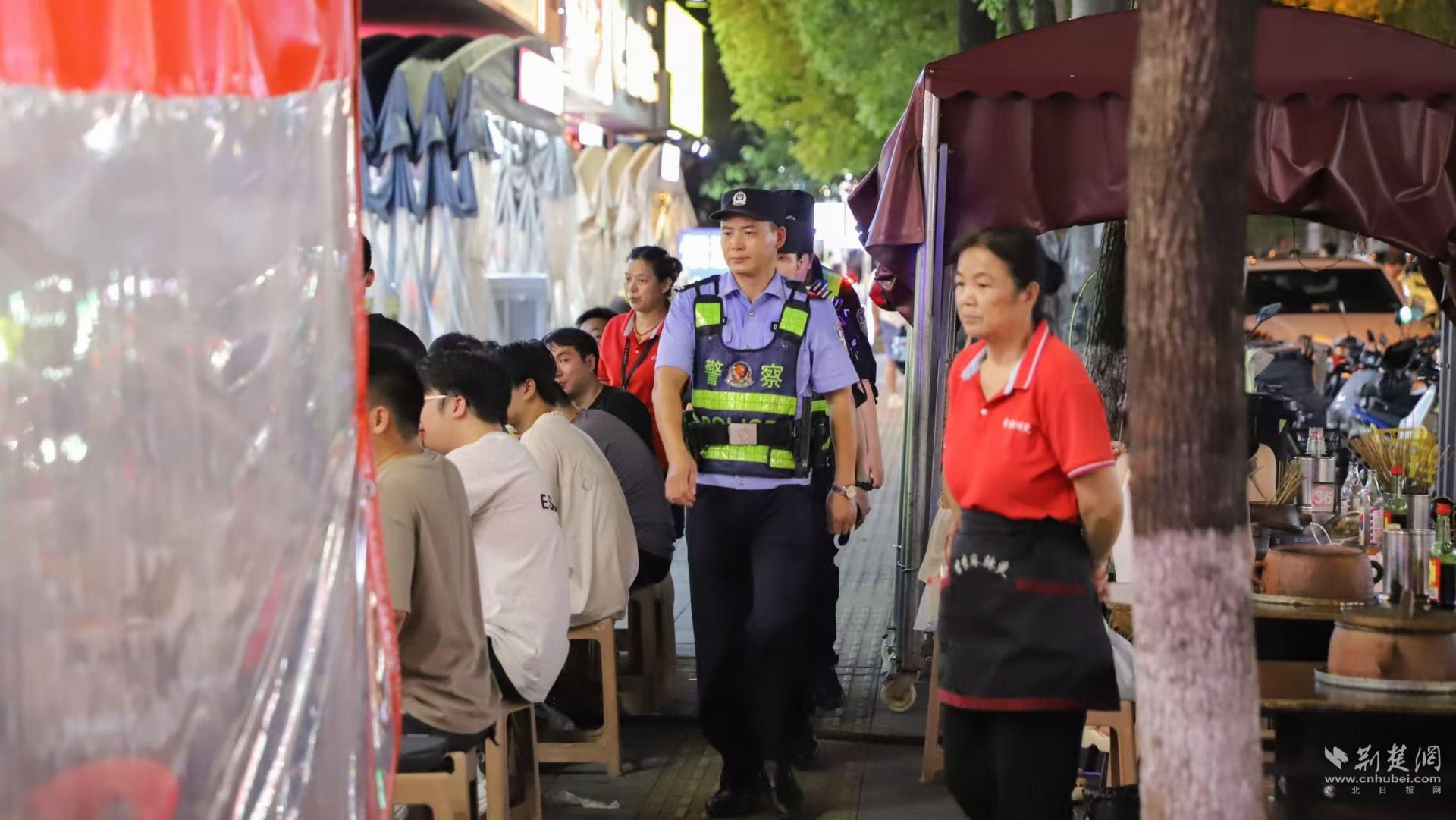 2023年11月,青山分局成立恩施街步巡队,负责恩施街夜间巡逻守护,业务能力出众的李新伟被任命为步巡队负责人。全长1.7公里的恩施街,他每天都要带队来回巡逻6~7趟,日均步行2万步是常态。