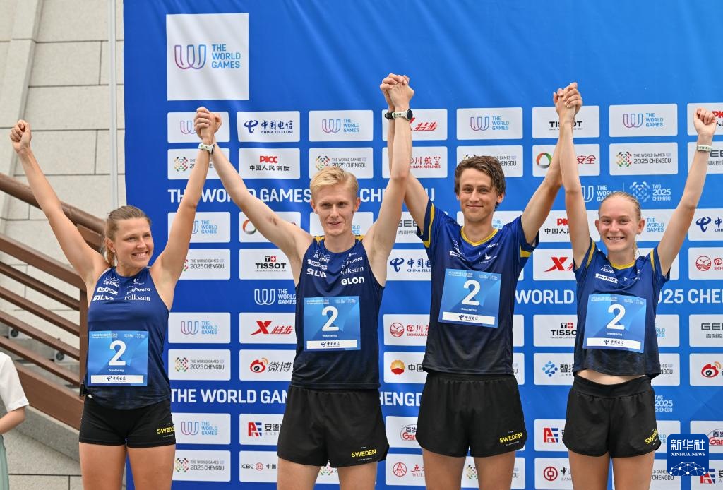 当日,2025年成都世运会定向混合短距离接力决赛在成都东部新区定向赛场举行。最终,瑞士队、瑞典队和捷克队分获冠亚季军。