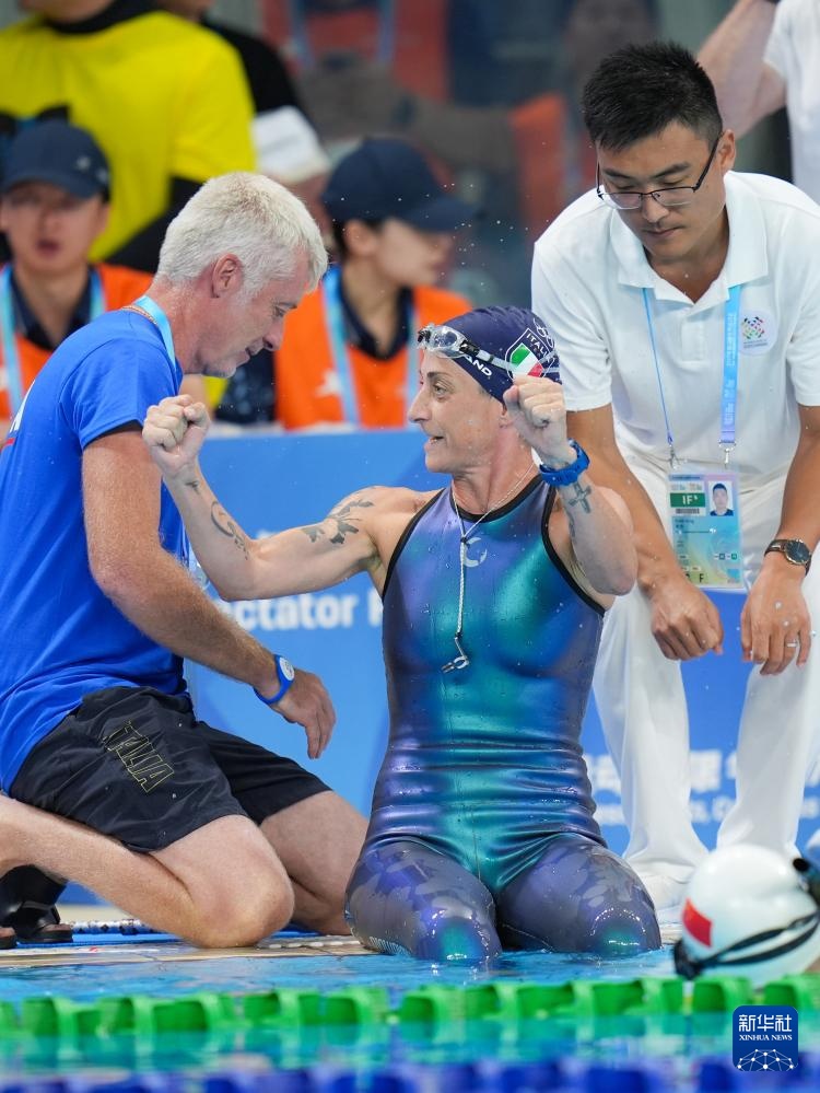 当日,2025年成都世运会自由潜水女子动态无蹼FFS3-FFS4决赛在成都体育学院三岔湖校区举行。