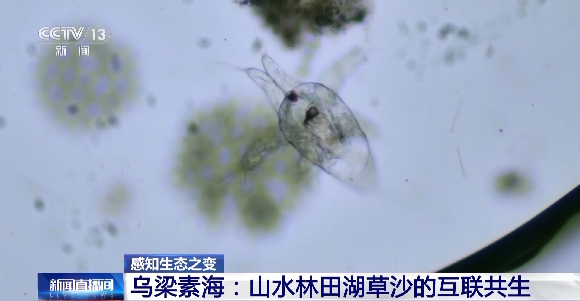 在高倍显微镜下,一滴水放大40倍后,看到了枝角类、桡足类生物缓缓游动。放大400倍,看到硅藻和绿藻在轻轻摇曳。这些微观世界中的“小生命”感知着湖泊生态的变化。
