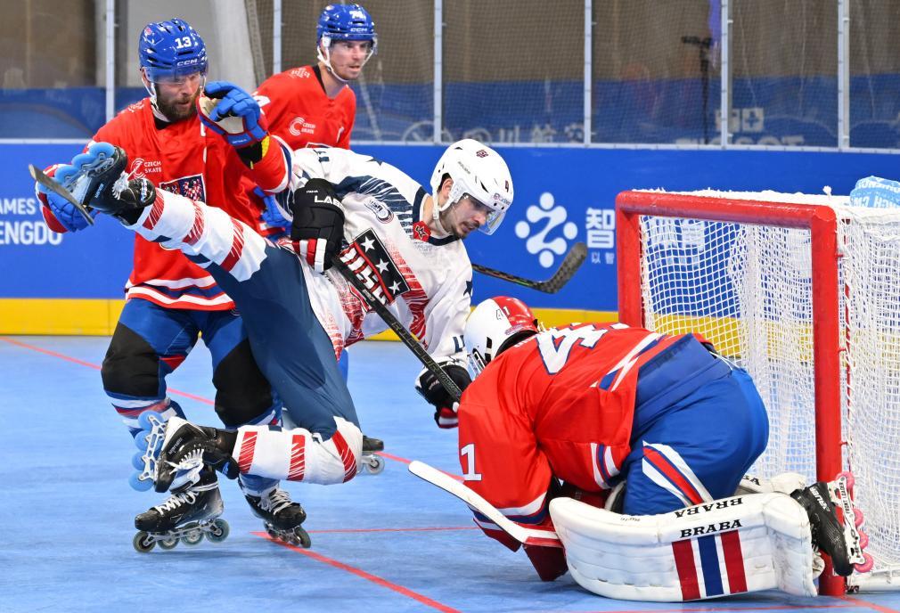 新华社成都8月11日电(记者程楠、刘扬涛)成都世运会单排轮滑球项目11日结束,美国队在决赛中4:3击败捷克队,赢得轮滑项目首枚金牌。中国队获得第八名。