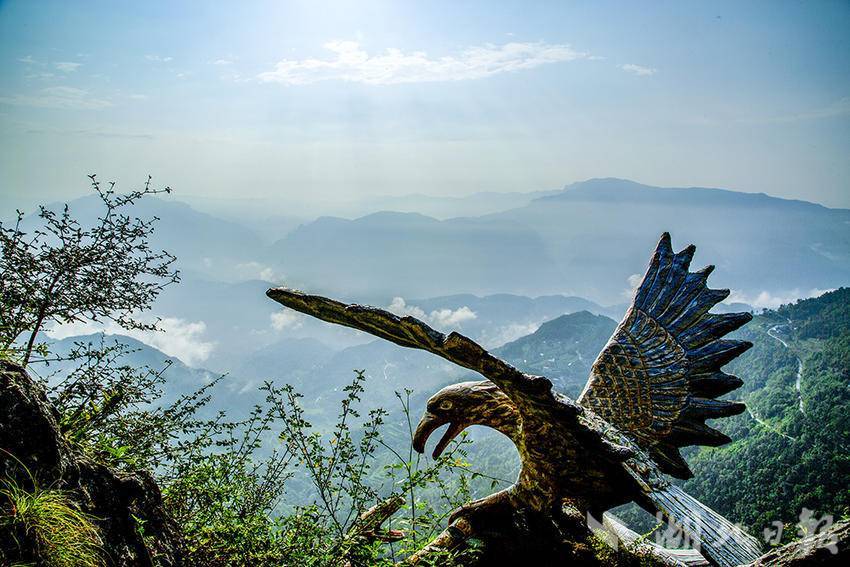 登临此处,造型逼真的鹰嘴岩雕塑“展翅”山间,与层峦叠嶂、云海翻涌相融。阳光穿透云雾,洒在连绵山脊,青绿山林、缥缈云海、巍峨山峦交织,如天然水墨长卷。游客漫步观景台,与美景同框,沉醉于这方天地。