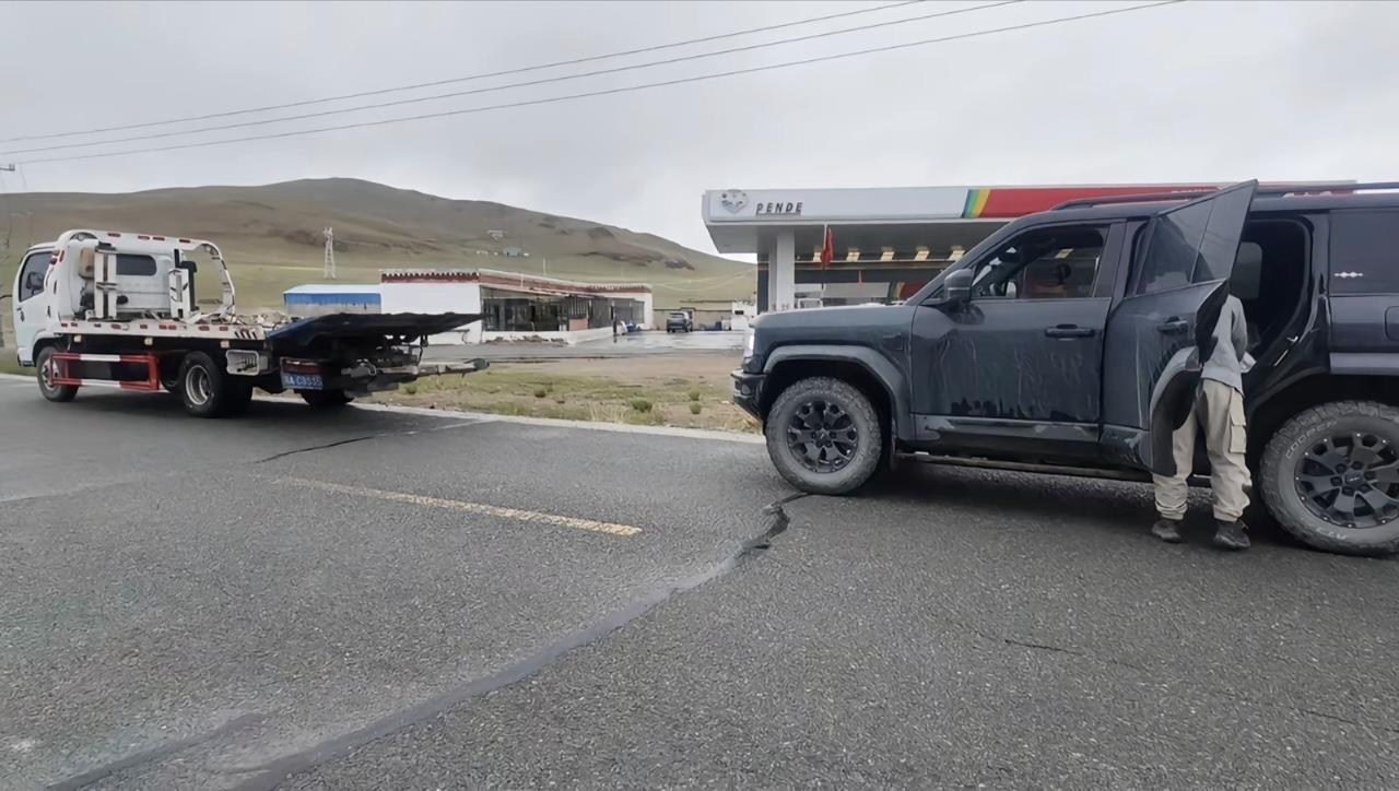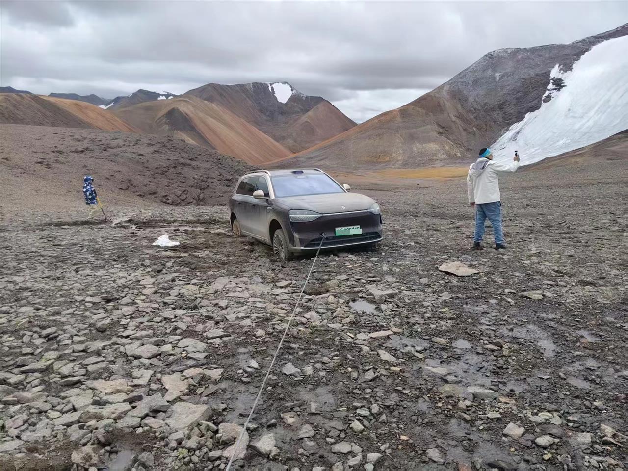 石先生称,7月23日上午10时30分左右,他开着方程豹豹5和老板去酒店接上了陷车求助的一家三口,因为拖车车速较慢,他便开车先行到了拉琼拉垭口,在被陷车辆附近做准备工作,“这里前几天下了雨,除了泥沙以外还有水,一不注意就容易陷车。”等到拖车到达后,花了不到1小时便把问界车拉了出来。