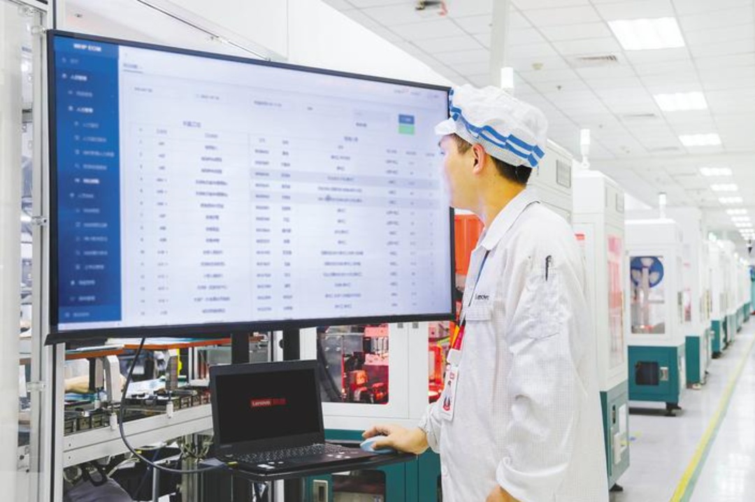 联想武汉产业基地生产车间,工作人员正在查看“鲁班超级智能体”生成的排岗表