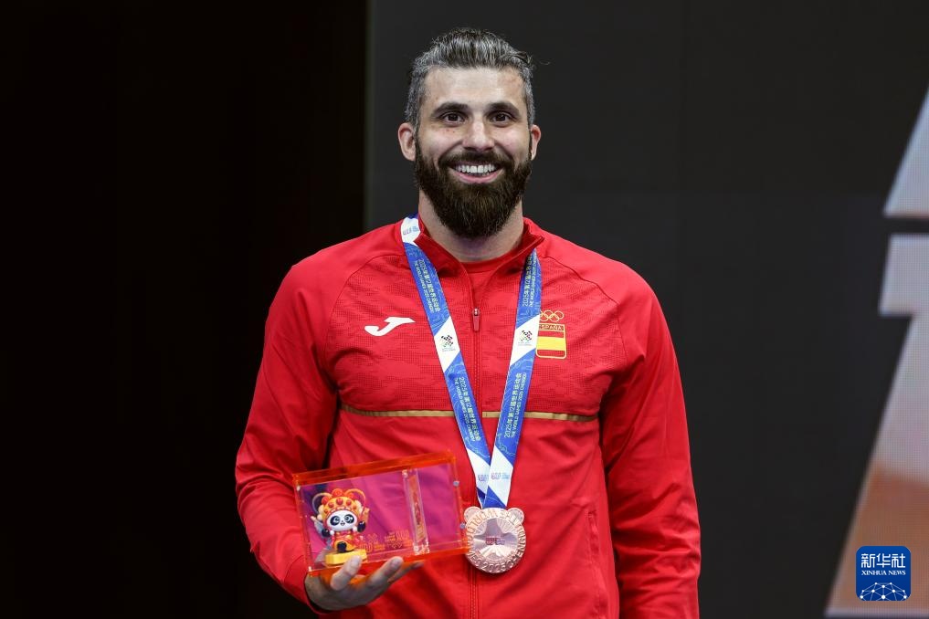 8月12日,季军西班牙选手安德烈在领奖台上。