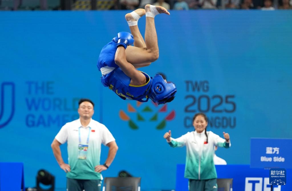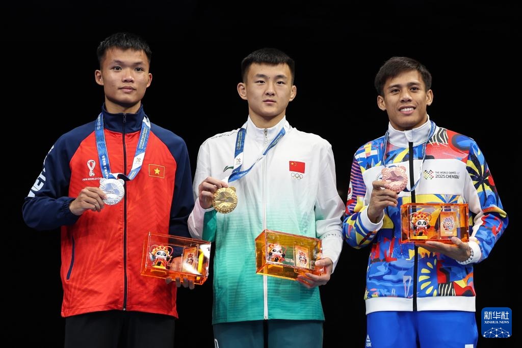 当日,在2025年成都世运会武术男子散打56公斤金牌赛中,中国选手唐思硕战胜越南选手杜辉煌(音),夺得冠军。