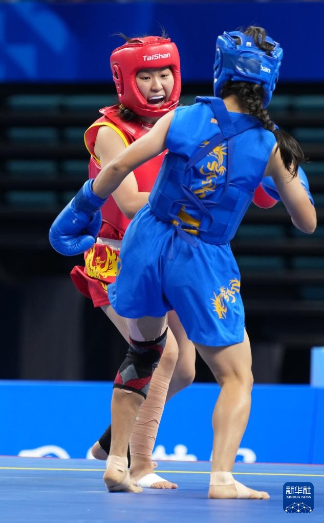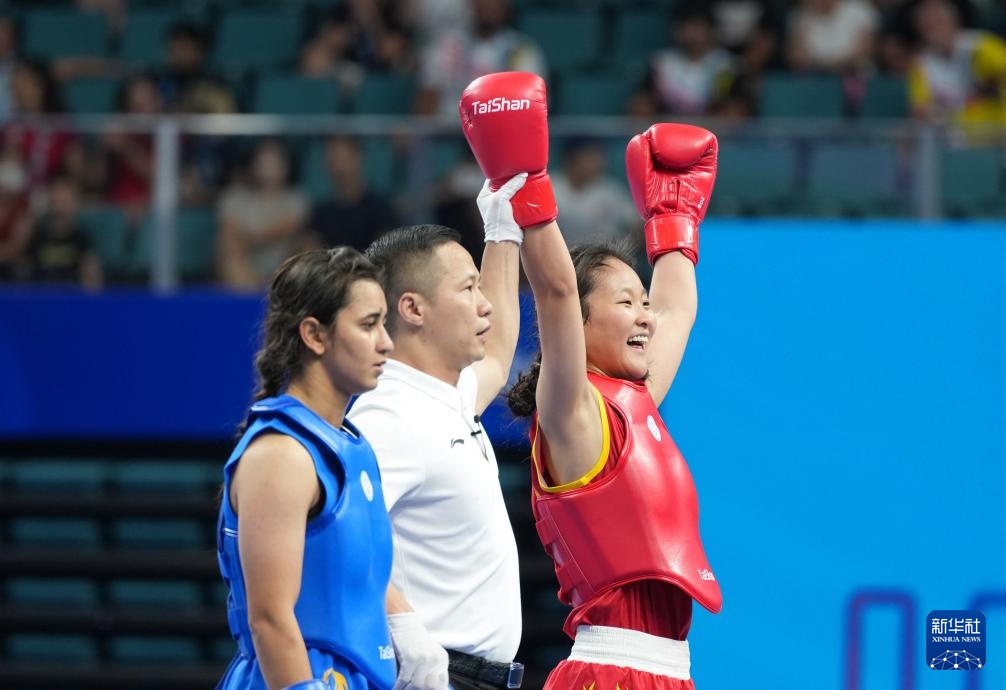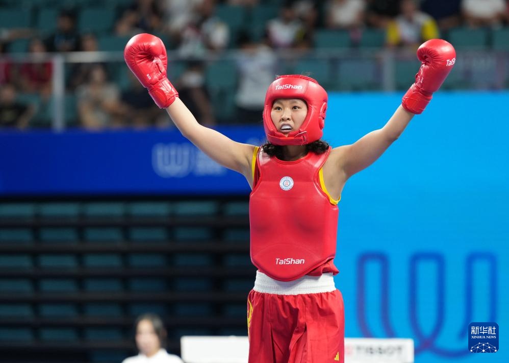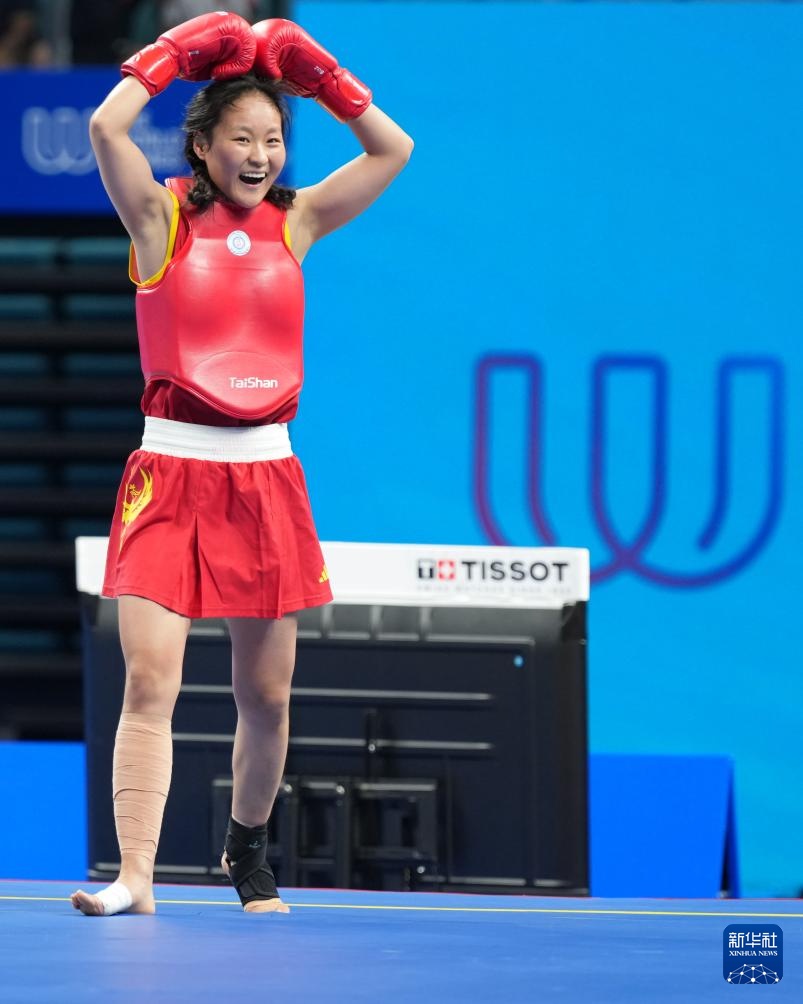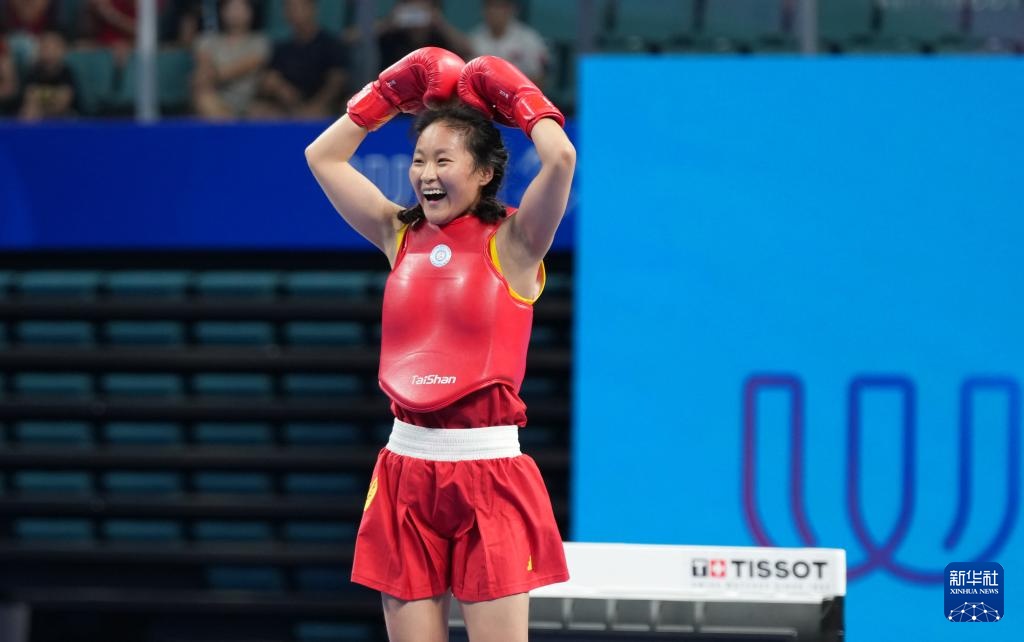 当日,在2025年成都世运会武术女子散打52公斤级金牌赛中,中国选手陈梦粤战胜印度选手巴特拉,获得冠军。