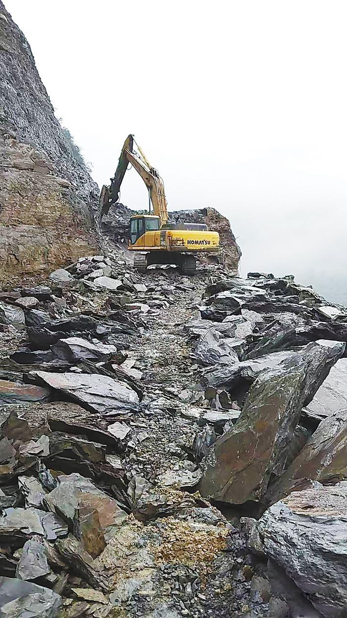 悬崖峭壁上艰难开凿道路。(受访单位供图)