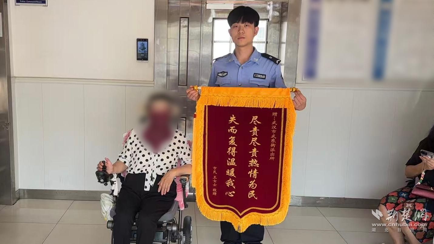 荆楚网(湖北日报网)讯(记者 白云 实习生 潘妍 通讯员 邵乐希 陈诚 方利民)8月5日一早,武汉市公安局青山区分局(武汉化学工业区分局)武东街派出所大厅上演了暖心一幕——58岁的刘婆婆(化姓)驾驶电动轮椅从大老远赶来,为帮助其找回手机及被盗刷钱款的民警辅警送上一面锦旗致谢。