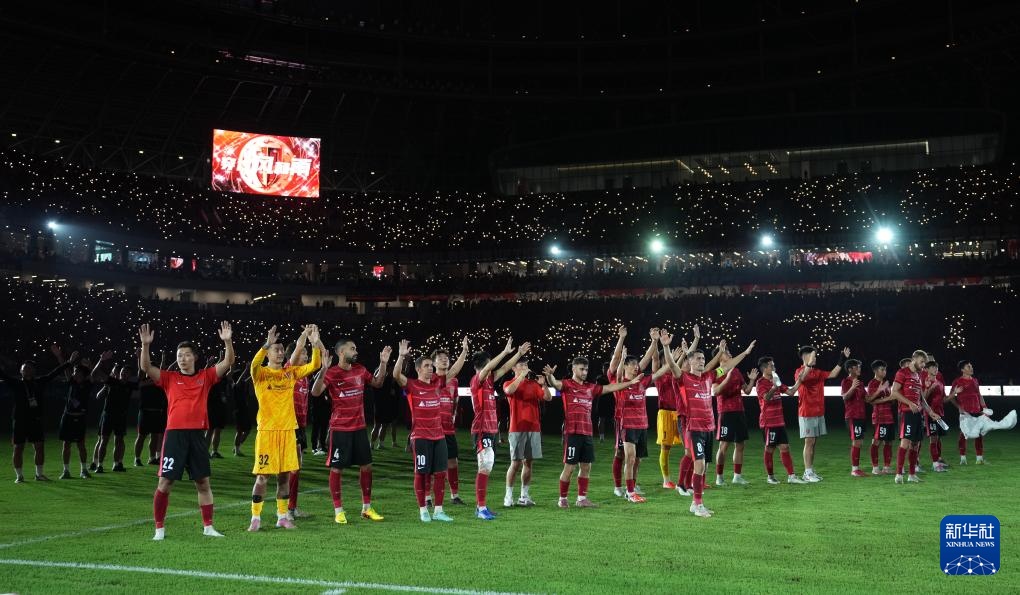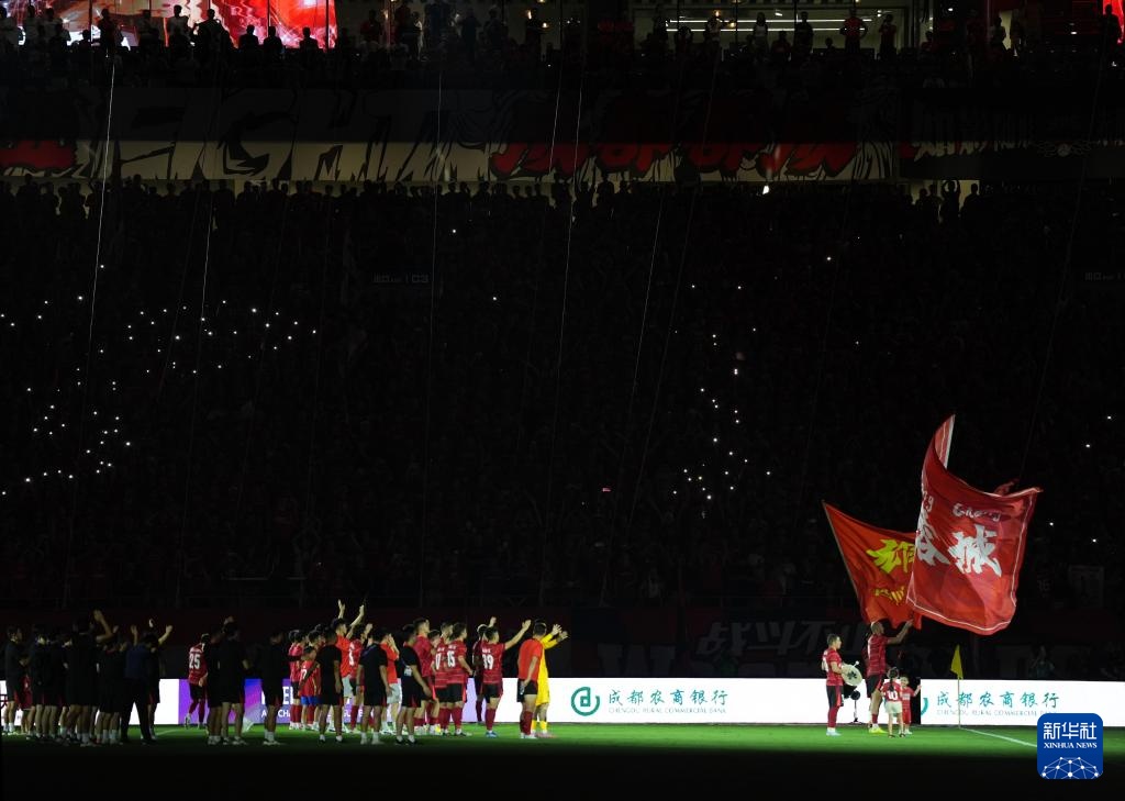 8月12日,成都蓉城队球员在比赛后向球迷致意。