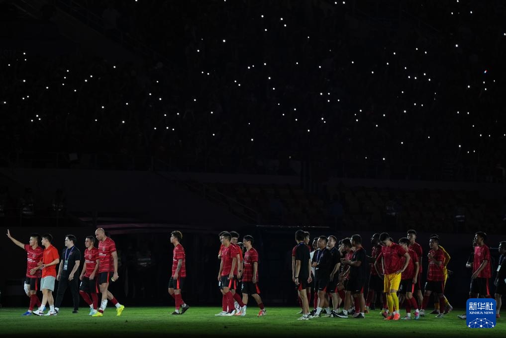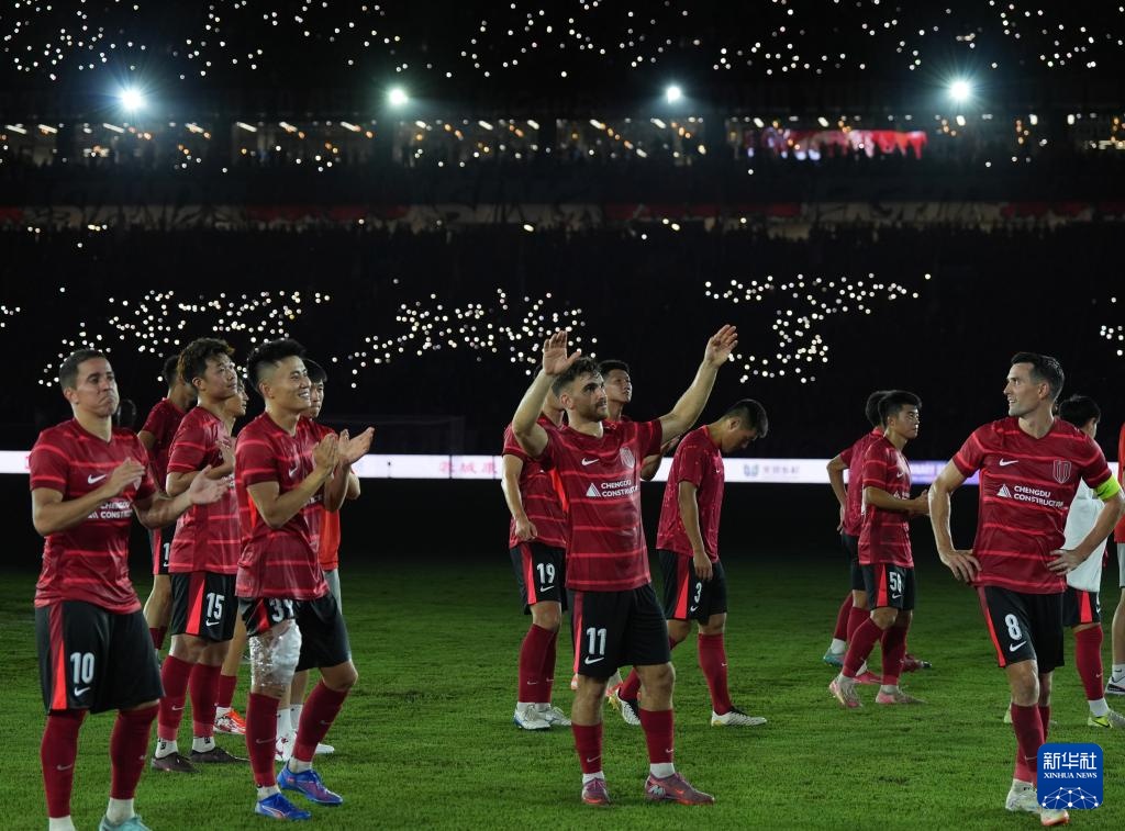 8月12日,成都蓉城队球员在赛后向球迷致意。