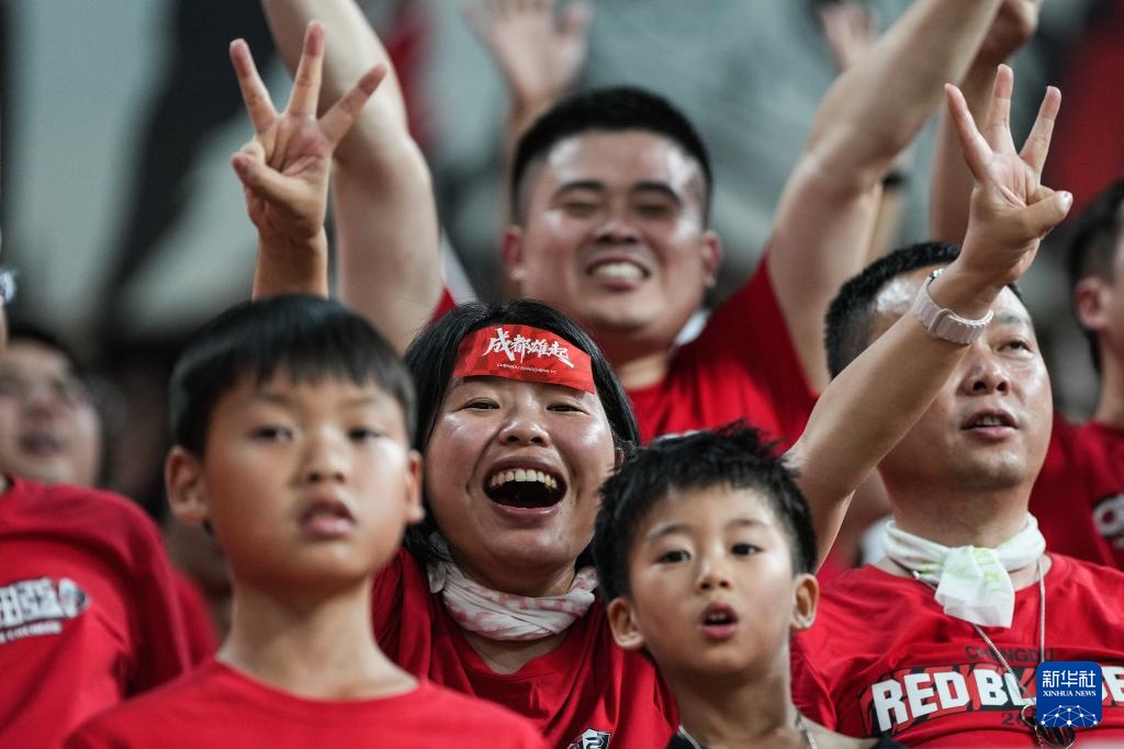 8月12日,成都蓉城队球迷在比赛后庆祝。