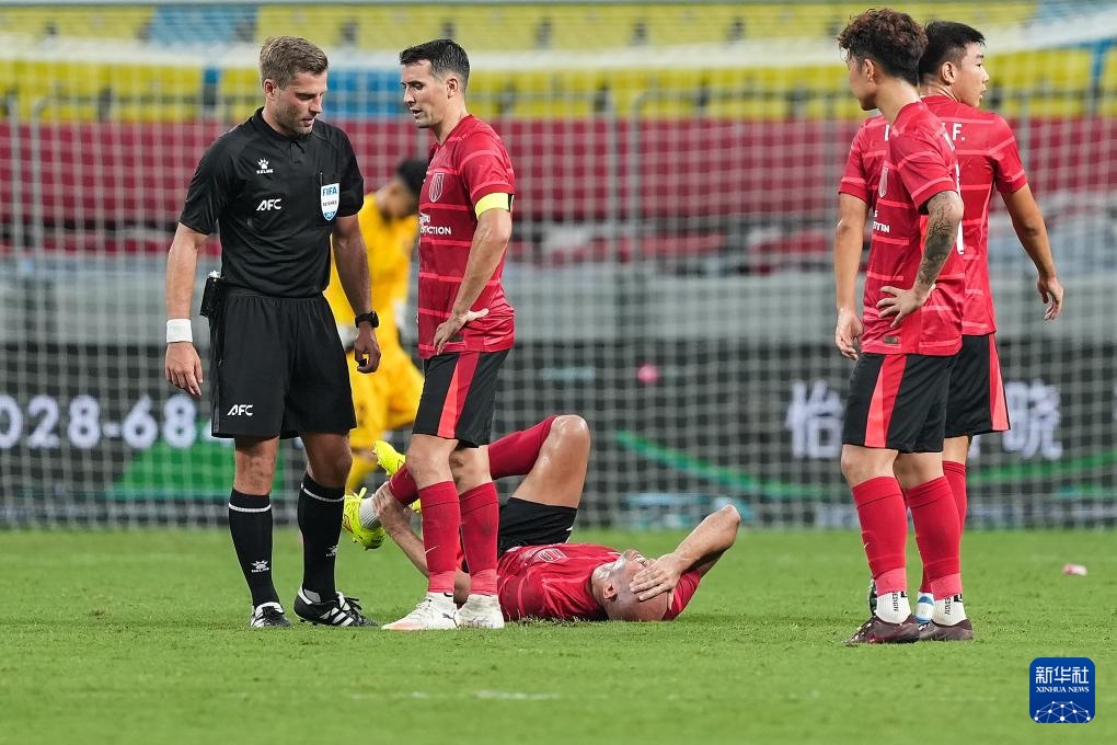 8月12日,成都蓉城队球员费利佩(下)在比赛中倒地。