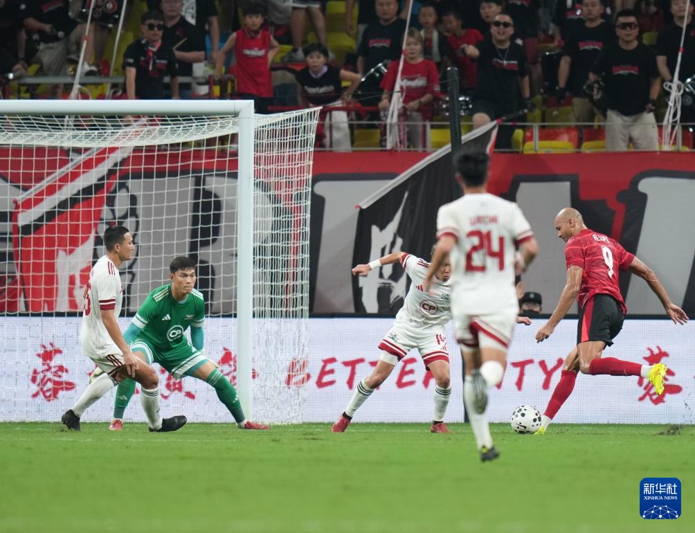 8月12日,成都蓉城队球员费利佩在比赛中射门得分。