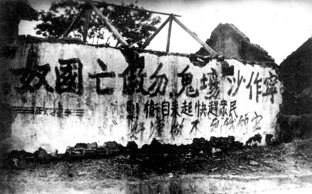 新四军书写的抗日宣传标语。(叶挺摄)