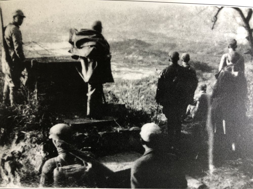 新四军指战员在战斗前观察地形。(叶挺摄)