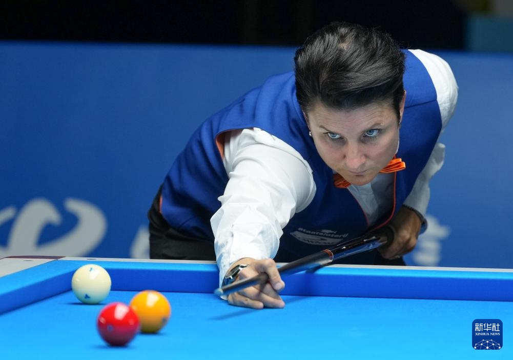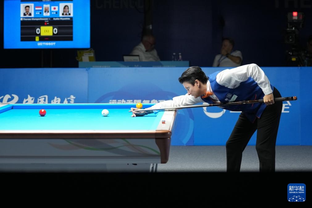 当日,在2025年成都世运会台球女子三库开伦决赛中,荷兰选手特蕾丝25比12战胜日本选手宫下绫香,获得冠军。