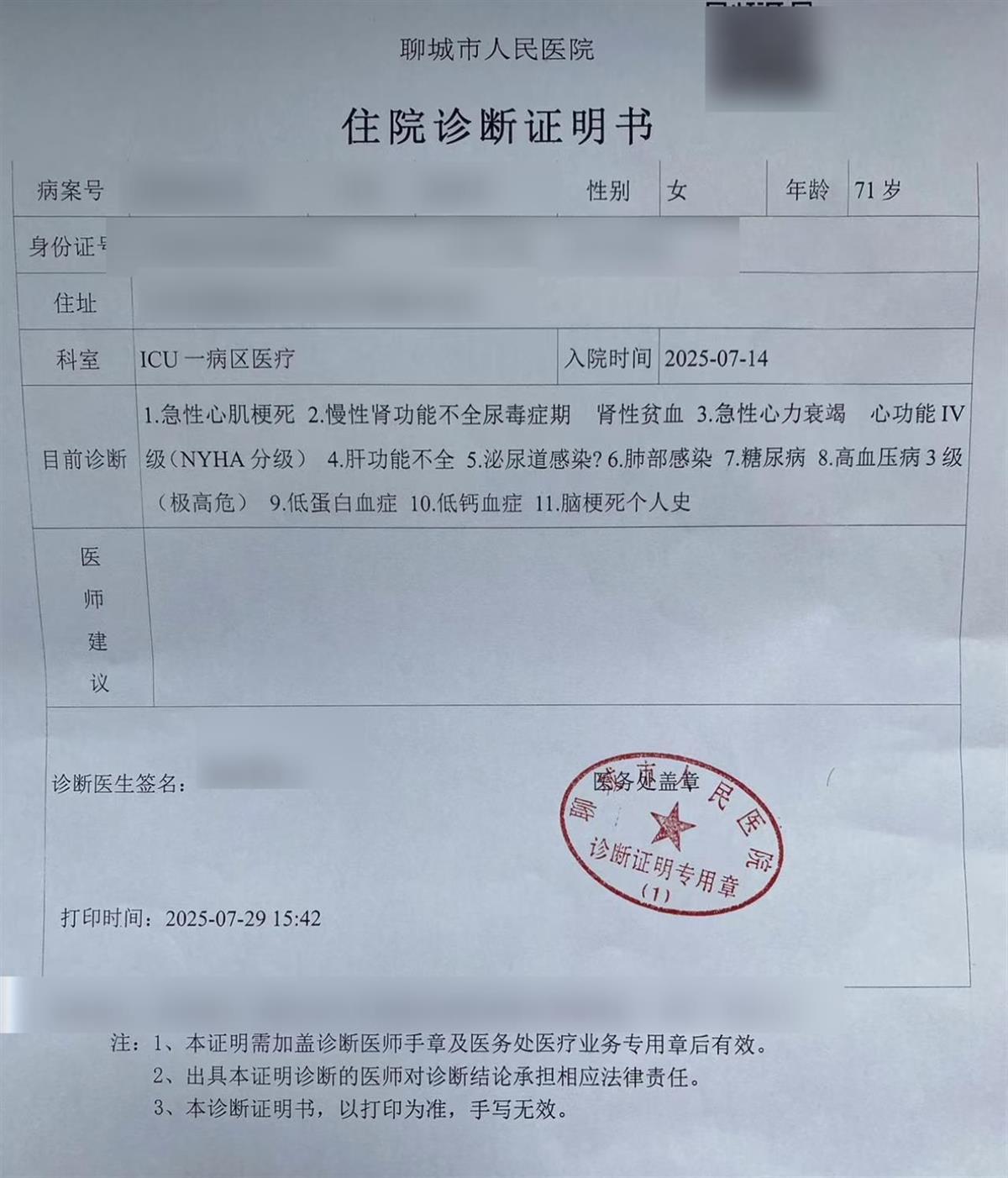 尹先生母亲诊断证明