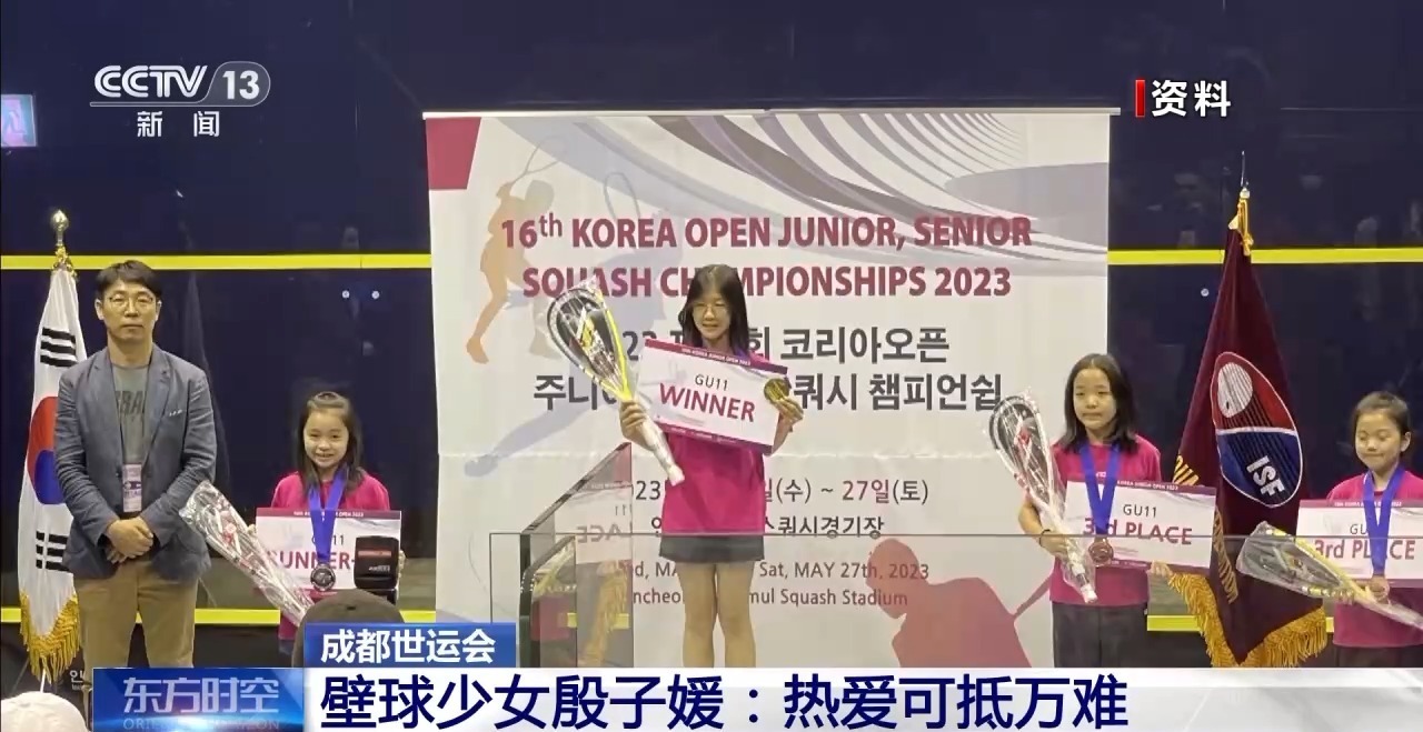 成都世运会比赛激战正酣,在中国代表团中,年龄最小的是13岁的壁球选手殷子媛,她是如何在这么小的年纪就登上国际大赛的舞台的?我们一起来了解这位壁球少女的故事。