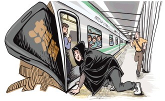 近日,杭州地铁9号线客运中心地铁站,一名男子身穿黑丝上衣,身披黑斗篷,在地铁开门时,以爬行的方式进入车厢,行为诡异,有乘客被吓到尖叫着跑开。