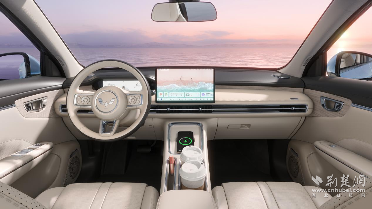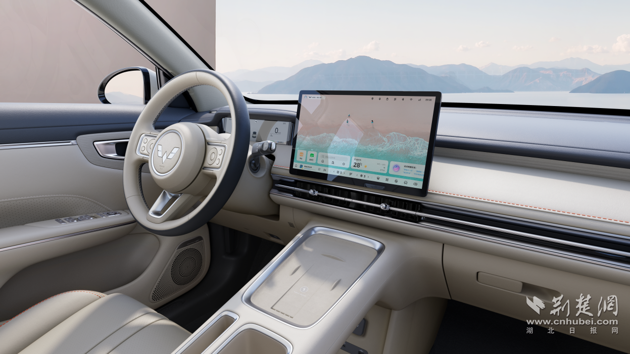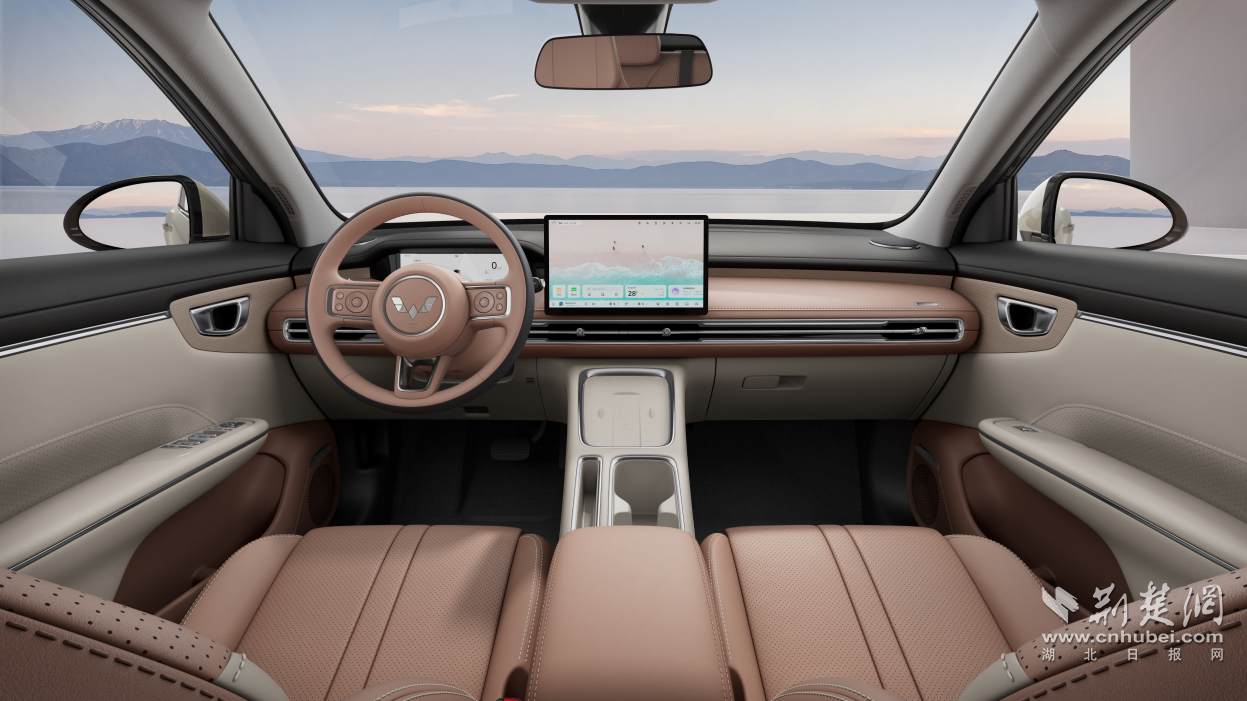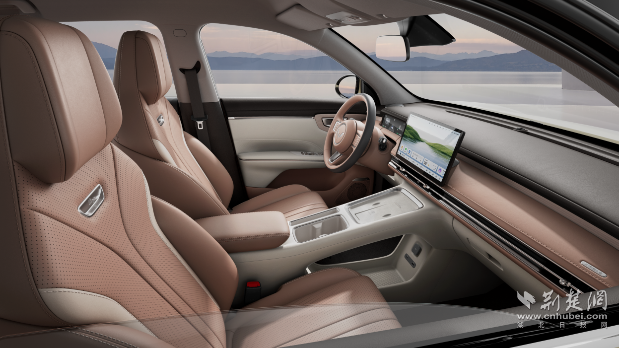 新车提供柔白与暖棕双色内饰,柔白内饰以“晨光初醒”为灵感,营造出北欧极简般的静谧氛围;暖棕内饰复刻斜阳下金沙的流动质感,用质感传递高级时尚的格调。3D质感木纹工艺汲取日内瓦钟表纹理原木纹理为灵感,在细节处体现质感;搭配大面积的软质皮质包覆及高亮镀铬装饰,优雅中更显高级。
