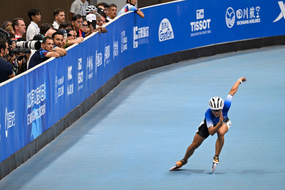 8月14日,在2025年成都世运会速度轮滑女子场地赛(200米追逐)决赛中,萨尔瓦多选手诺切斯·加利亚多获得冠军,法国选手布吕内和比利时选手瓦努特分获亚军和季军。