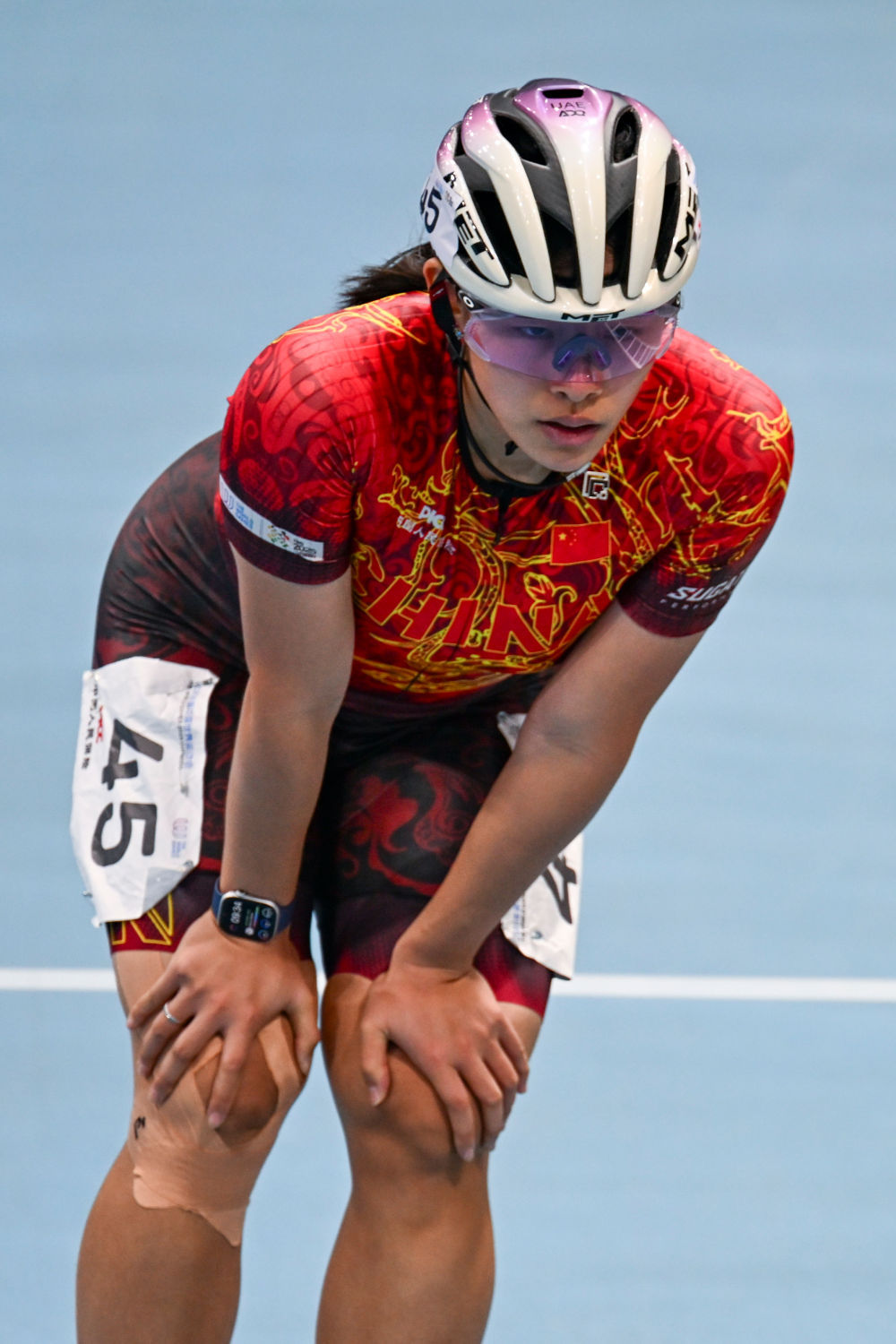 ↑ 中国选手周晴在比赛后。她以19.284秒的成绩获得第10名。
