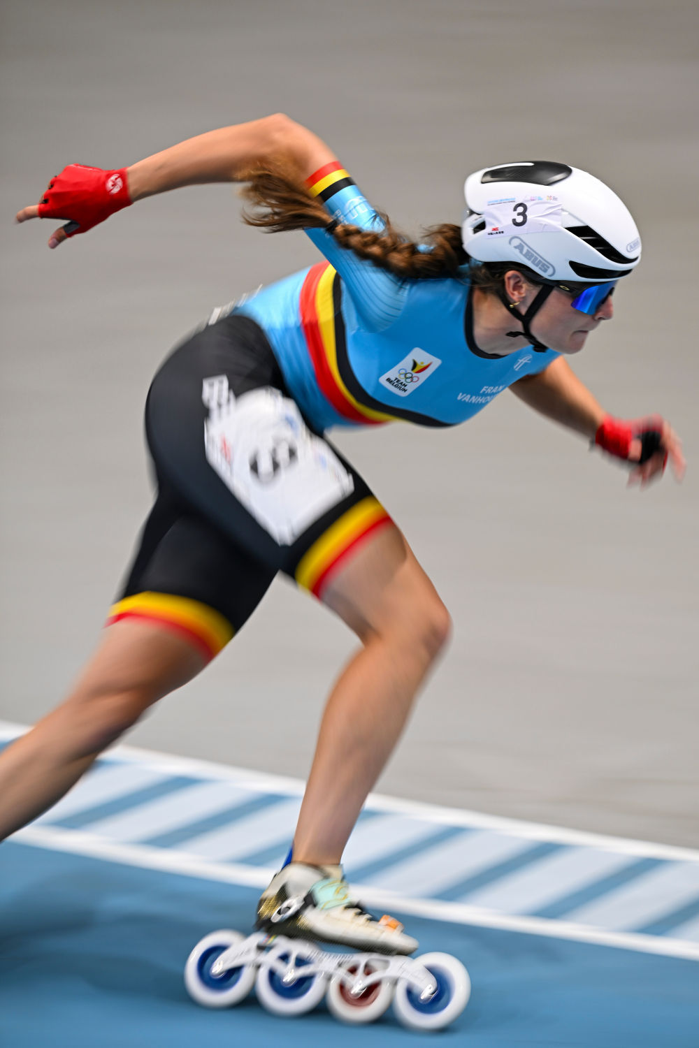↑ 比利时选手瓦努特在比赛中。她以18.773秒的成绩获得季军。