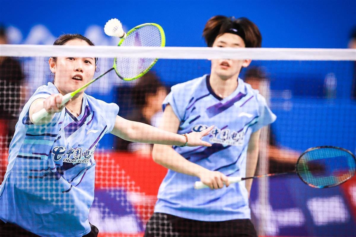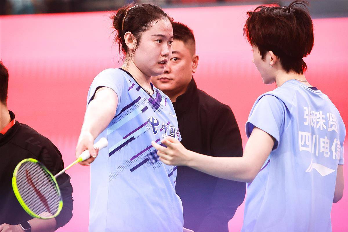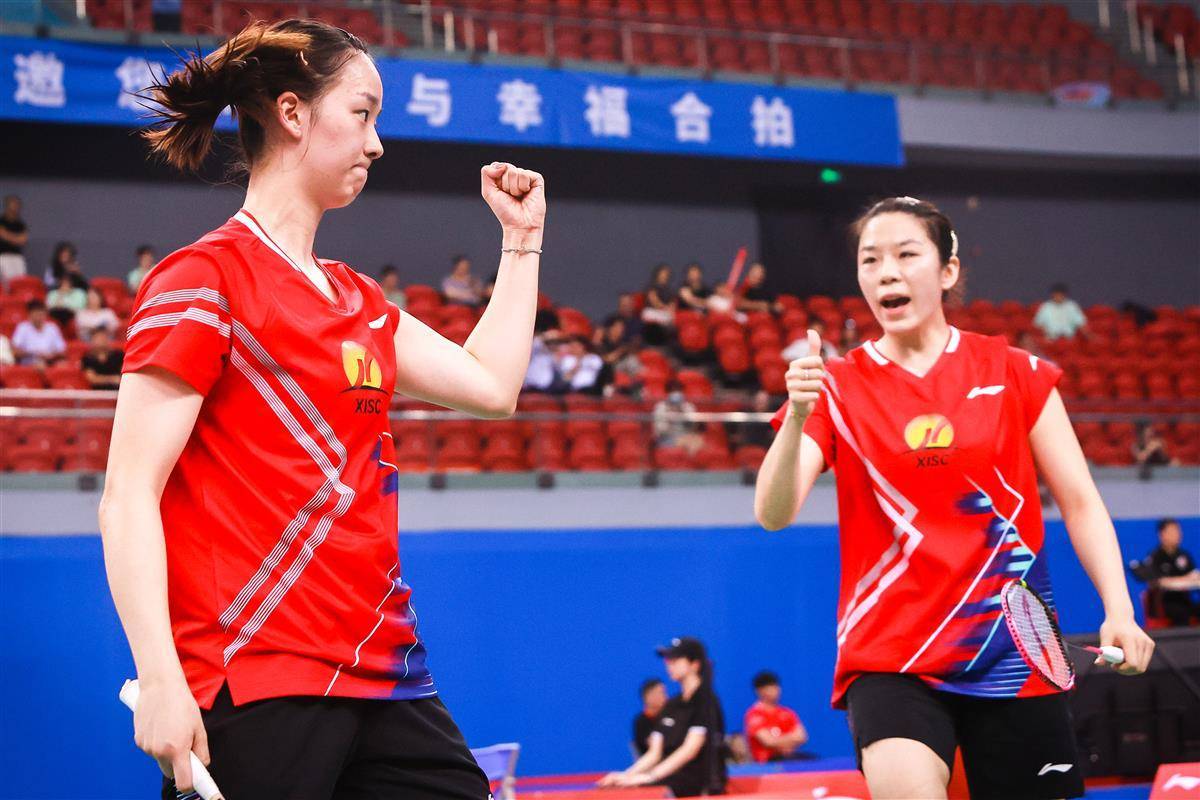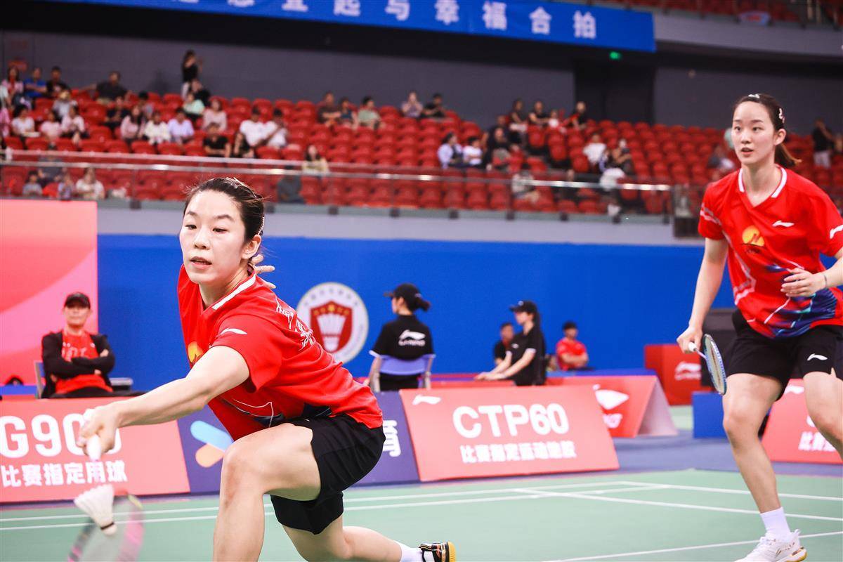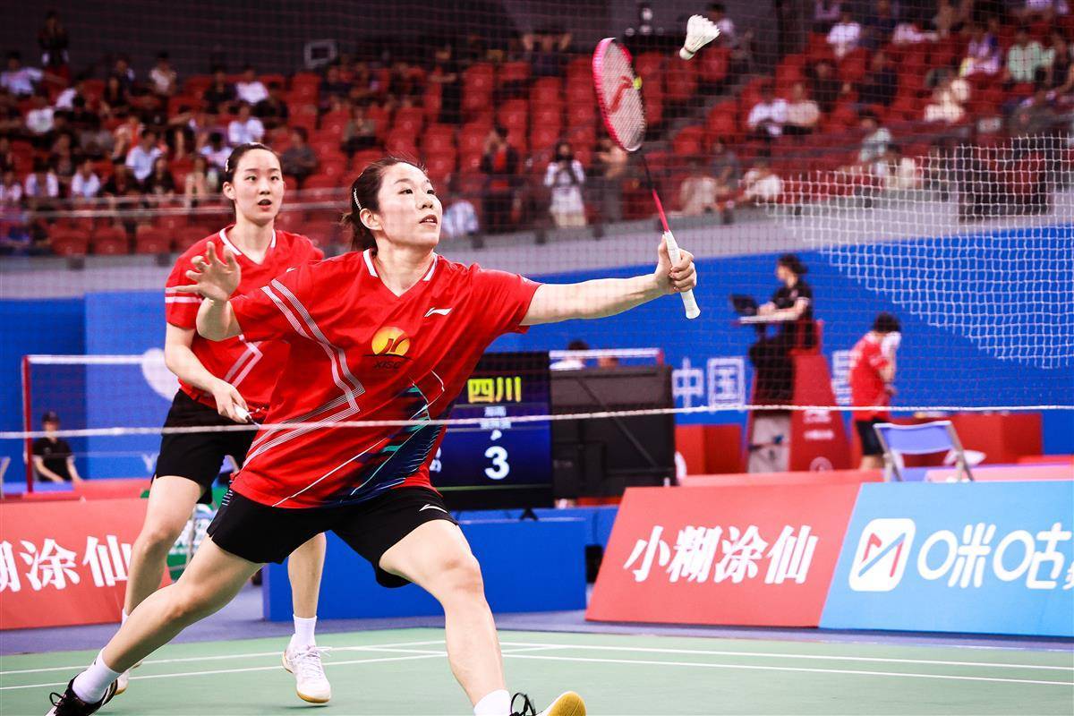 8月14日,十五运羽毛球资格赛在宜昌奥体继续进行,在当晚一场成年组女团焦点比赛中,代表湖南出战的奥运冠军贾一凡携手小将张驰,以2比1(16-21、21-12、26-24)逆转国家队队友、四川组合郑雨/张殊贤。中国羽毛球协会主席张军、奥运冠军谌龙等众多羽毛球名宿现场观赛。(湖北日报全媒记者 时龚 摄)