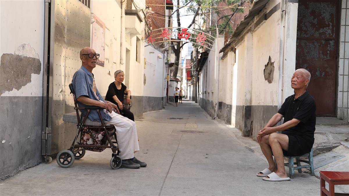 不远处的一条小巷口,87岁的乔金喜和83岁的高广正坐在一起闲聊纳凉。
