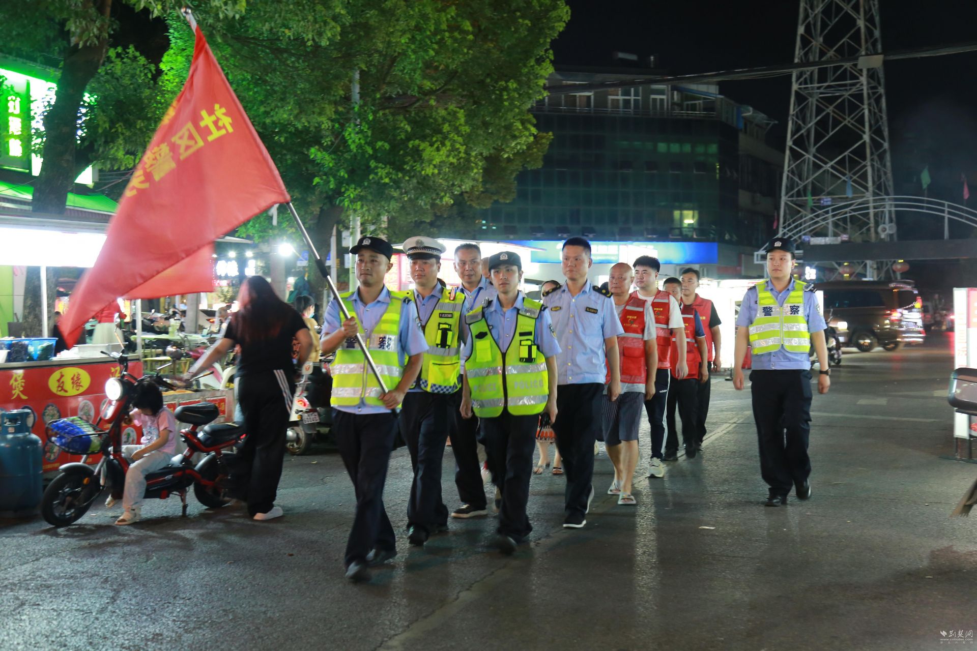 荆楚网(湖北日报网)讯(记者 白云 实习生 潘妍 通讯员 周剑波 舒星)夜幕下的夜市摊点,是城市在经历白天辛劳之后的温暖与慰藉。黄陂区公安分局前川街环城派出所民警王一为每晚八点都会组织“环城义警”在潘家田夜市开展夜巡,守住这人间烟火气。在街边路灯和炉火的映衬下,“警察蓝”与“义警红”交织成了新时代的美丽“枫”景。
