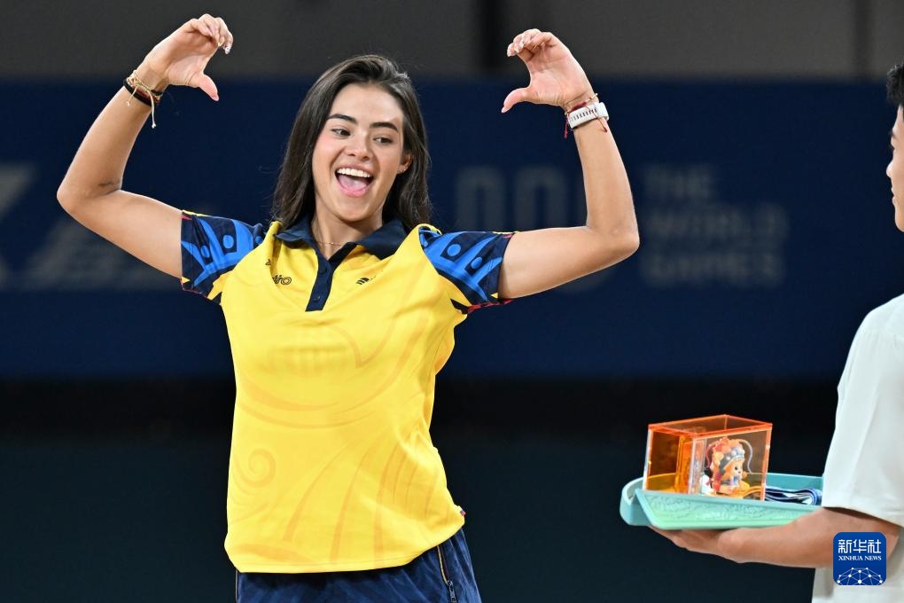 8月15日,亚军哥伦比亚选手鲁埃达在颁奖仪式上庆祝。