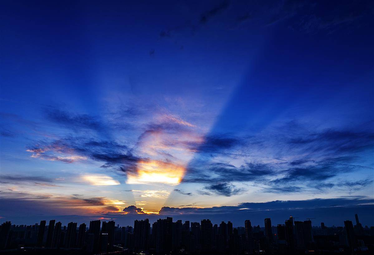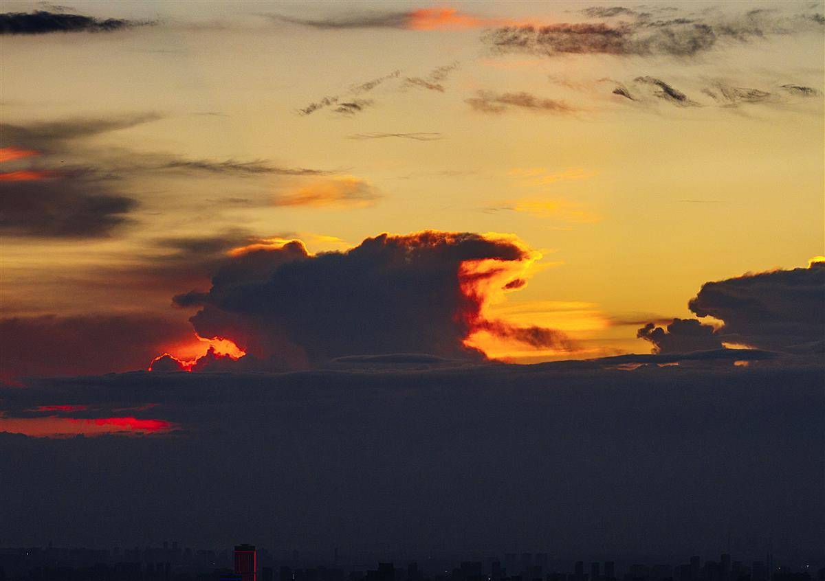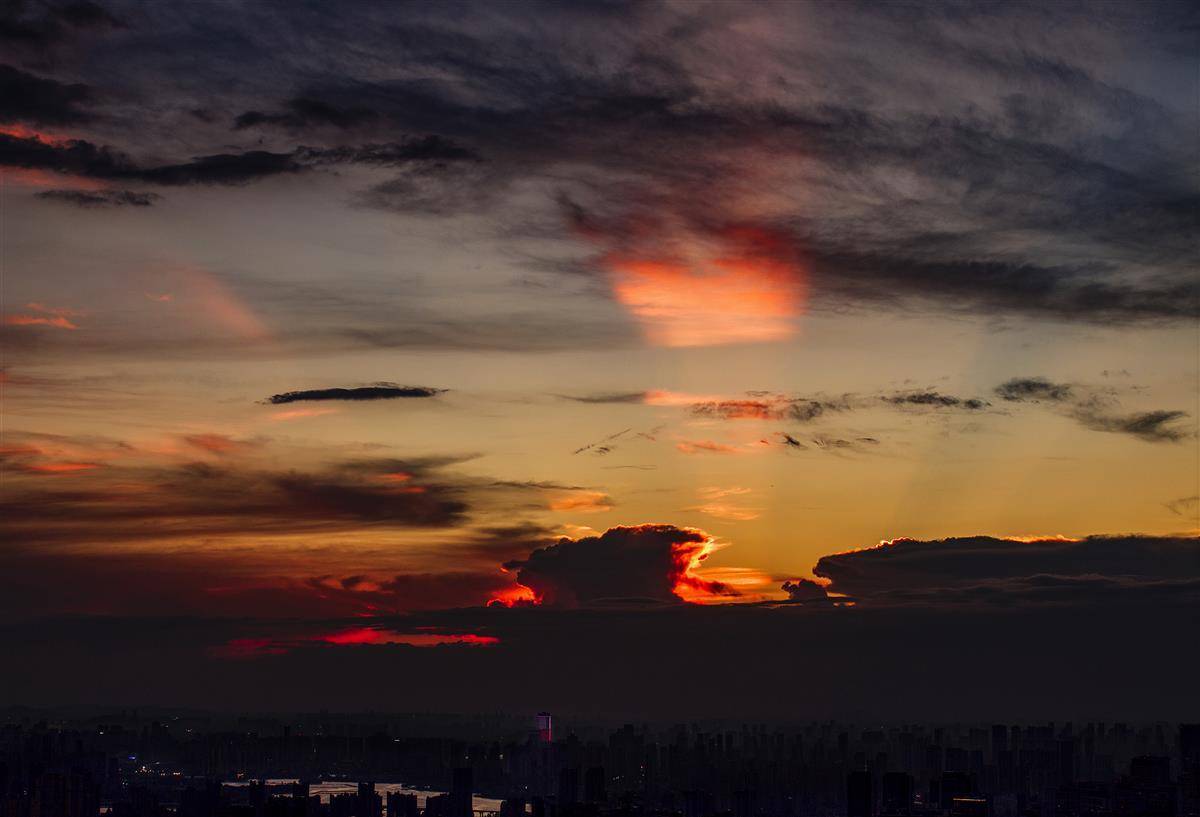 长江上空现绚丽晚霞 美景如画