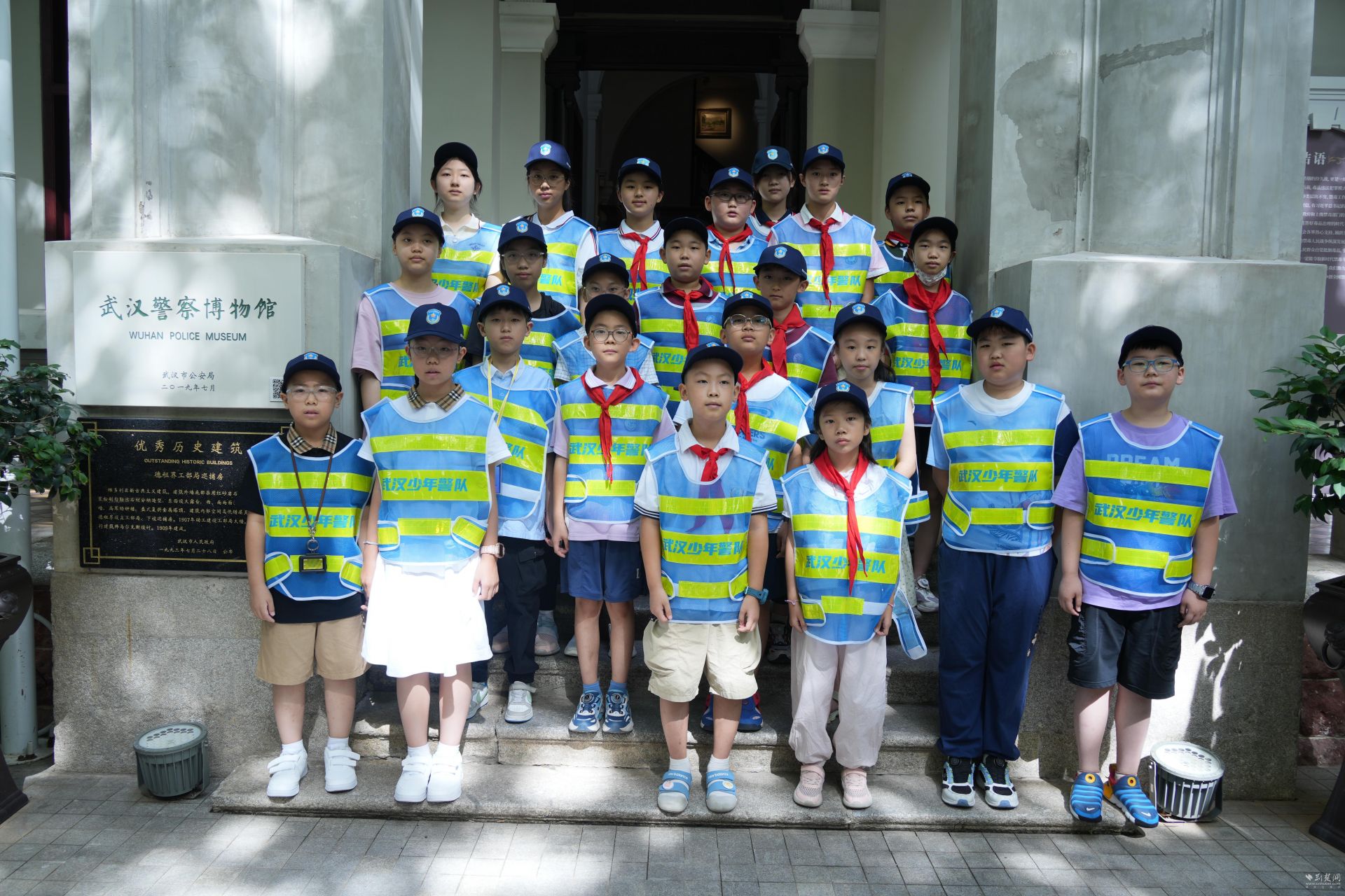 武汉少年警队队员在武汉警察博物馆正门合影。通讯员供图
