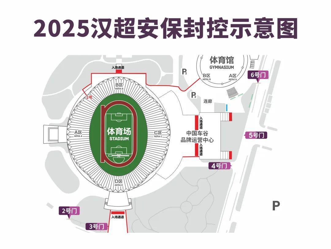 交通出行及入场方面:推荐乘坐地铁,可乘坐地铁3号线到武汉体育中心站A出口,步行导航至武汉体育中心5号门或3号门入场。开车来的球迷朋友们,可将车辆停至体育中心5号门旁的社会停车场,停好车后步行至5号门或3号门入场,这是离“来一脚、凑热闹”汉超美食生活荟和揭幕战赛场最近的停车场区域。另外,驾车的朋友还可以将车停放至武汉体育中心冰上运动中心、足球公园、游泳馆以及毗邻的万达商圈停车场。