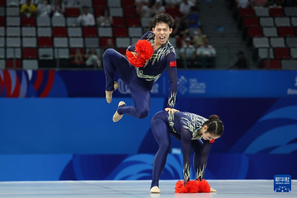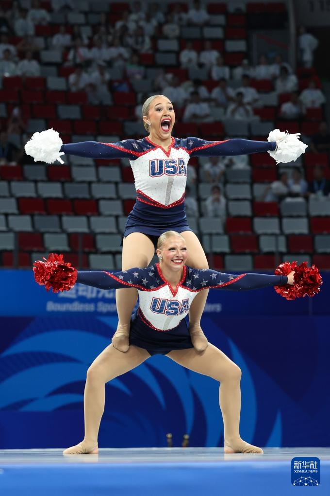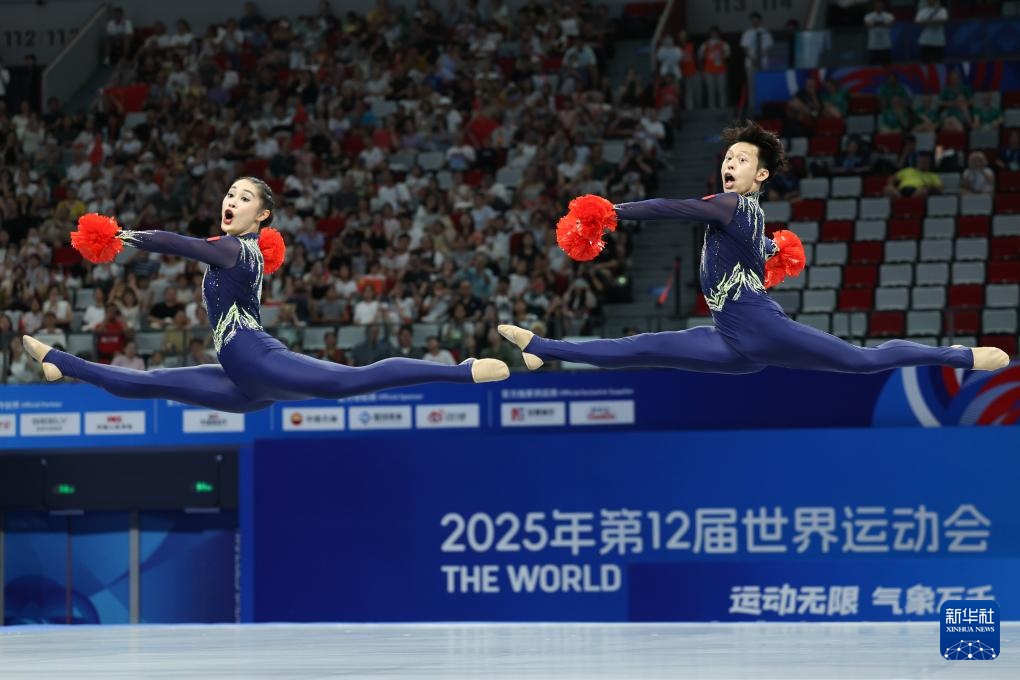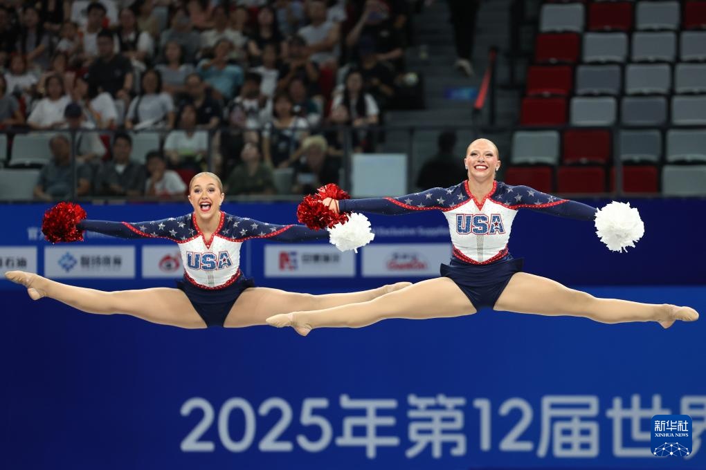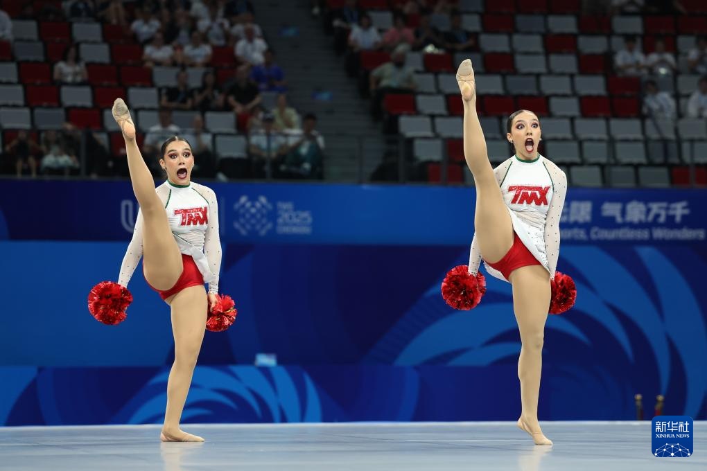 当日,2025年成都世运会啦啦操双人花球半决赛第一轮举行。