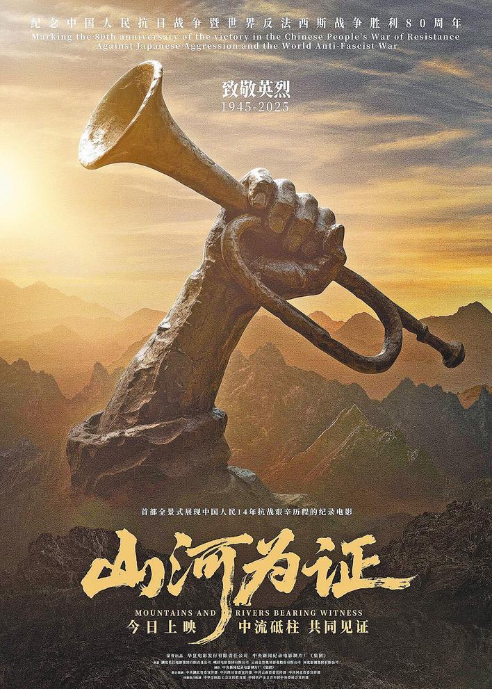 湖北日报讯 (记者孙凌、喻煜、通讯员童义淇)8月15日,在纪念中国人民抗日战争暨世界反法西斯战争胜利80周年的重要历史时刻,首部全景式展现中国人民14年抗战艰辛历程的纪录电影《山河为证》在全国上映。湖北省委宣传部、湖北长江电影集团参与制作与出品。