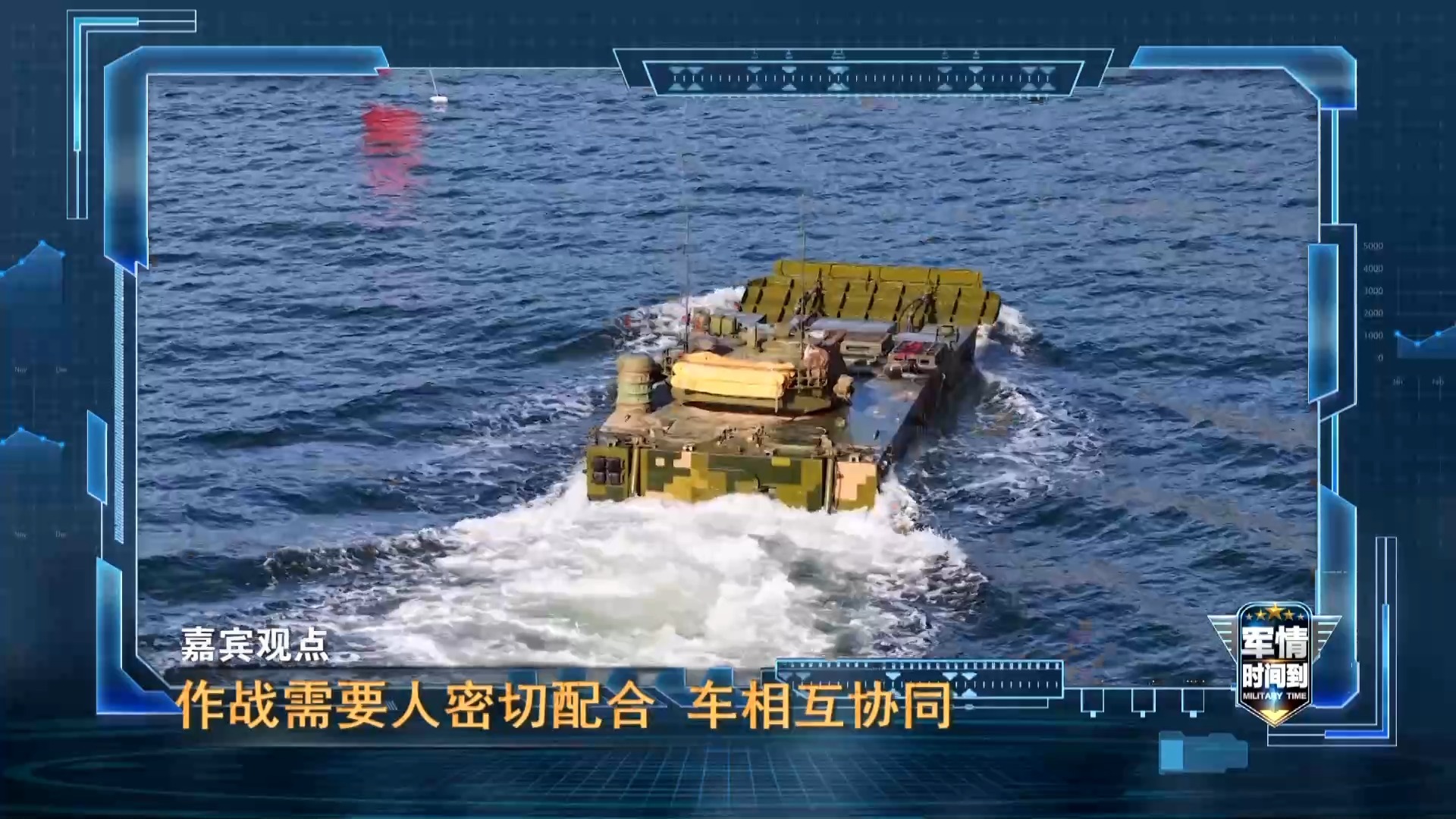 军事评论员 张学峰:两栖突击车里面通常是四名人员,一个驾驶员,一个车长,一个炮长,还有装填手。那么在进行作战的时候,特别是在进行射击的时候,需要几个成员之间的密切地配合。不同战术之间要有协同。比如说要对目标进行射击的时候,要相关目标进行分配,责任区的分配。这是车组之间协同。最后还有有人和无人之间的协同。