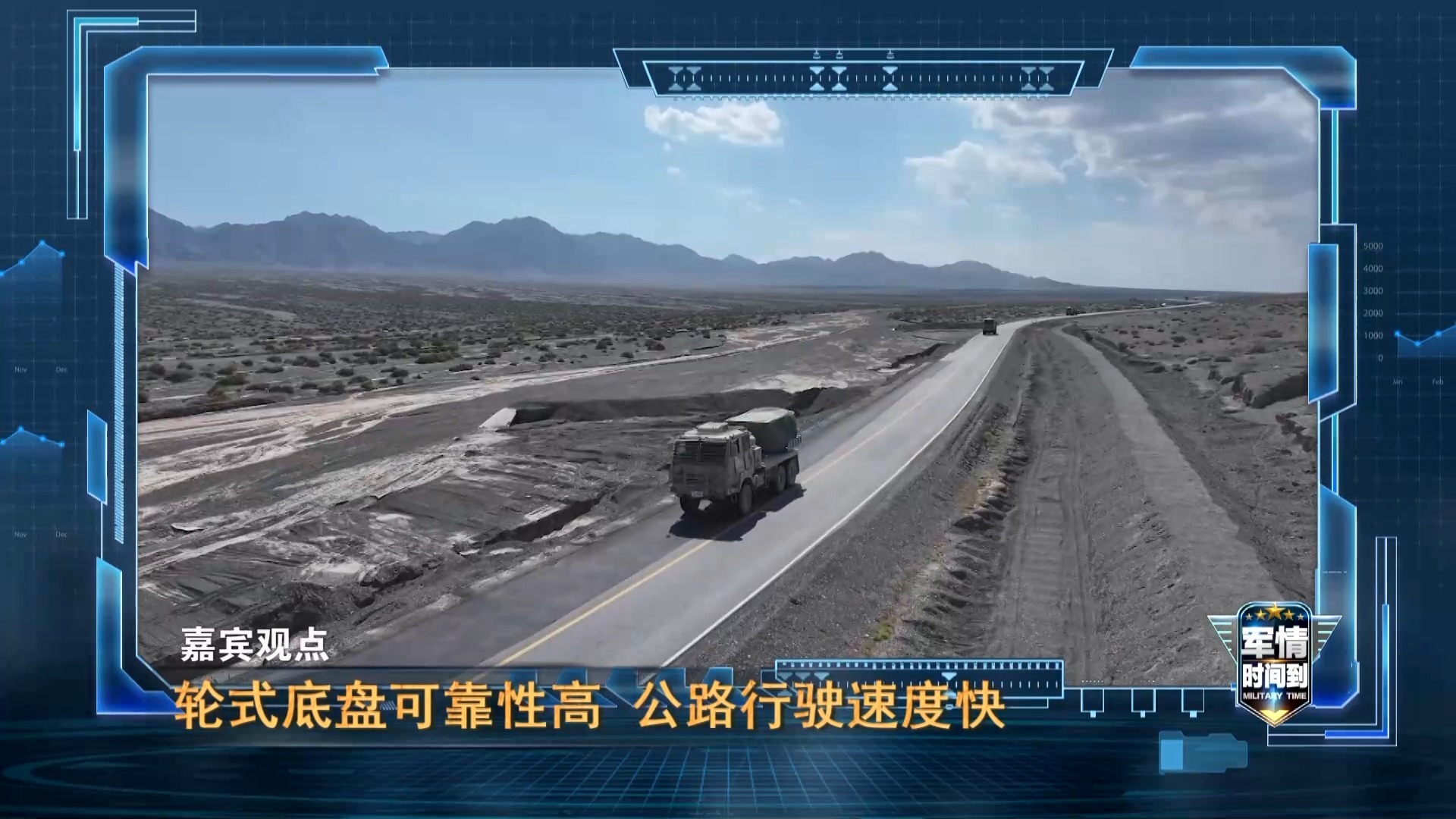 军事评论员 张学峰:那么轮式底盘相对于一些履带式底盘有它的优势,它的可靠性还比较高,公路行驶速度非常快。通常情况下可以达到一百公里左右甚至更高。像现在我们国家的公路网非常发达,可以依托公路进行机动。另外这种底盘在一些硬路面上,包括在一些戈壁沙漠上也有比较好的通过能力。所以这种快速的机动能力确保了它自己的安全,提高了它的生存能力。除了这种轮式底盘之外,它还有一个特点就是箱式发射火箭炮。那么它采用了集运输、发射储存一体的这种发射箱。在发射完炮弹之后、火箭弹之后可以进行快速的吊装。像这两个发射模块、两个发射箱基本上可以在不到四分钟的时间内完成吊装。能够快速装填又意味着它就可以进入快速的机动、快速地投入新的作战中。既提高了它的生存能力,也提高了它的火力持续能力。