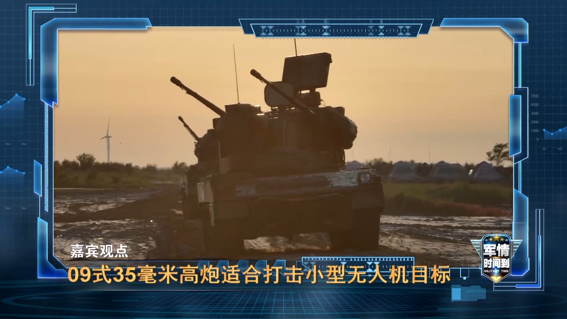 第二种防空系统,就是09式的35毫米高炮双管高炮。这个高炮首先在高炮里面,特别是中小口径的高炮里面射速比较快、射程也比较远。它实际上也具备使用所谓的可编程弹药的潜力。像这样的高炮非常适合打击小型的无人机。当然我们还有看到有便携式的防空导弹。这种便携式防空导弹它的发射隐蔽性比较强,可以进行偷袭。当然它的前提是外围还有更先进的、更远程的防空系统。