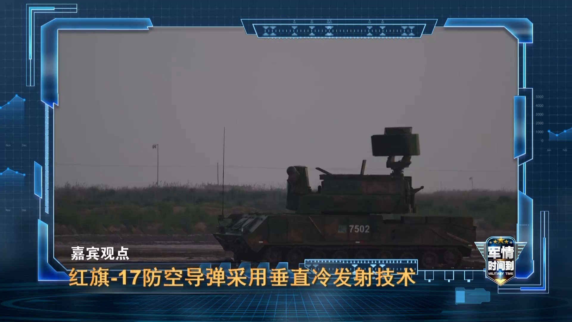 军事评论员 张学峰:我们看这个防空分队装备的防空系统,主要是近程防空系统,低空近程防空系统。那么其中射程最远的是应该是红旗-17防空导弹。防空导弹战车自己带有两部雷达,一个是搜索雷达,一个是火控雷达。搜索雷达可以用来对目标进行广域的搜索,发现目标之后再由火控雷达进行跟踪,这个时候再发射导弹。而且它的发射导弹很有特点,采用了垂直冷发射技术。先把它通过弹射系统弹到空中,再点火再飞向目标,主要对付对方的一些进行凌空轰炸的战斗机、强击机,也可以拦截对方发射的空地弹药,包括一些无人机察打一体型无人机,包括攻击型无人机,它是都可以拦截的。只不过它是处于防空导弹里面比较末端的防空系统。