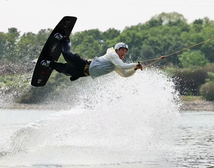 32岁的岳翰此次参加了男子尾波滑水项目。他在美国加州大学攻读法律专业博士学位期间接触了尾波滑水,练习约半年就在全美大学生联赛上拿到新人组第二名。2019年回国后,他与好友在杭州创办了一家尾波俱乐部并担任教练。如今,俱乐部有50名稳定会员,并通过进校园、训练营等方式发展青少年爱好者。