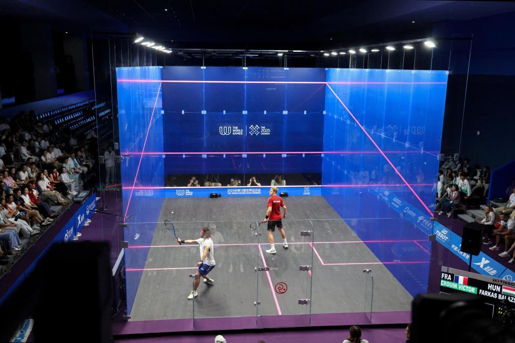 成都世运会壁球比赛现场。新华社记者 邬惠我 摄