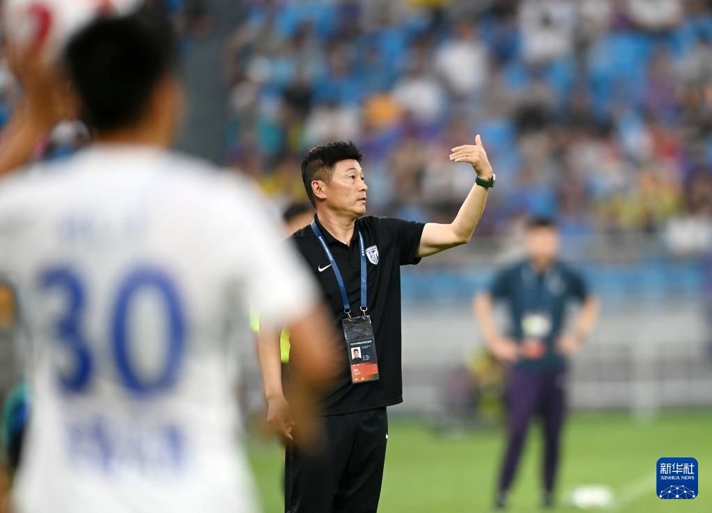 8月16日,大连英博海发队主教练李国旭在场边指挥。