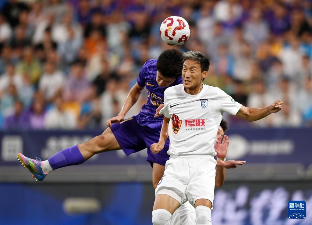 8月16日,天津津门虎队球员谢维军(左三)在比赛中。