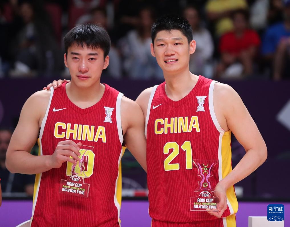 8月17日,中国队球员胡金秋(右)和王俊杰入选亚洲杯最佳阵容。