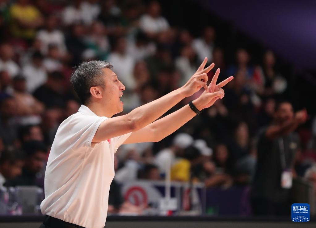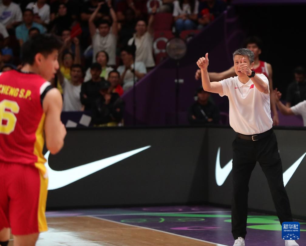 8月17日,中国队主教练郭士强在比赛中布置战术。
