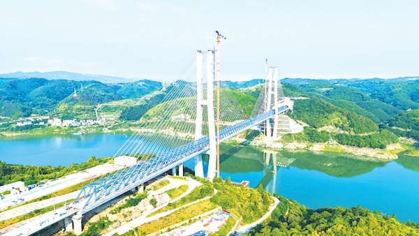 该项目自2022年3月进入主体施工以来,建设者经过3年多的奋力攻坚,先后攻克了硬岩大直径桩基分级扩孔施工、大体积承台混凝土智能温控成套技术研制、高塔混凝土抗裂性、组合梁收缩徐变性能研究等一系列技术难题。其中,项目组实施的10米大节段牵索挂篮施工技术,填补了国内行业空白。该项目累计完成专利申报54项。