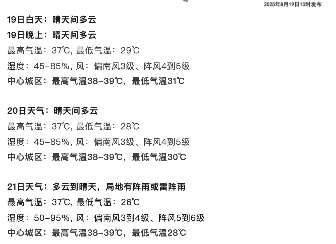 预计未来一周,武汉市维持晴热高温天气,局地气温可达39℃以上。后天起(21日)至25日,武汉市多分散性阵雨或雷阵雨,建议外出随身携带晴雨伞。